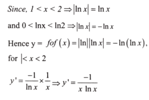 Mathematics (NDA/NA SOLVED PAPER 2023-I) (51 to 100)Total Questions: 5031. Find the value?(a) 1(b) π(c) π²(d) π + 1/π - 1Correct Answer: (b) πSolution:According to the question 32. What is the value of 8I²₁?(a) π(b) π²(c) π³(d) π⁴Correct Answer: (d) π⁴Solution:33. What is the value of I₂?(a)(b)(c)(d)Correct Answer: (a)Solution:I₂ = 2π/2√2 = π√2 .34. What is l equal to when a < 0 < b ?(a) a + b(b) a - b(c) b - a(d) (a + b)/2Correct Answer: (a) a + bSolution:35. What is l equal to when a < b < 0 ?(a) a + b(b) a - b(c) b - a(d) (a + b)/2Correct Answer: (b) a - bSolution:36. What is the derivative of f(x) at x = 0.5 ?Let f(x) = |ln(x)|, x ≠ 1(a) -2(b) -1(c) 1(d) 2Correct Answer: (a) -2Solution:37. What is the derivative of f(x) at x = 2?Let f(x) = |ln(x)|, x ≠ 1(a) - 1/2(b) -1(c) 1/2(d) 2Correct Answer: (c) 1/2Solution:38. What is the derivative of fof (x), where 1 < x < 2?Let f(x) = |ln(x)|, x ≠ 1 (a)(b)(c)(d)Correct Answer: (d)Solution:39. What is the value of p?(a) 2(b) 3(c) 4(d) 5Correct Answer: (b) 3Solution:40. What is the value of q?(a) 2(b) 3(c) 4(d) 5Correct Answer: (c) 4Solution:p = 3 and p + q = 7 ⇒ q = 7 - 3 = 4.Submit Quiz« Previous12345Next »