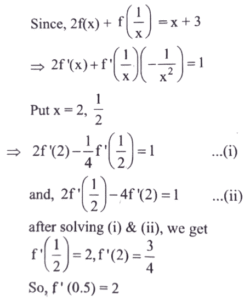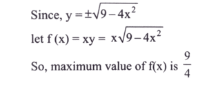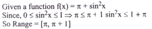 (Mathematics) NDA/NA SOLVED PAPER 2023 – II (01 to 50)Total Questions: 5041. Which one of the following is a possible expression for g(x)?Let f(x) = x² - 1 and gof (x) = x - √x + 1(a)(b)(c)(d)Correct Answer: (b)Solution:42. What is g(15) equal to?Let f(x) = x² - 1 and gof (x) = x - √x + 1(a) 1(b) 2(c) 3(d) 4Correct Answer: (c) 3Solution:43. What is f(0.5) equal to?(a) 1/2(b) 2/3(c) 1(d) 2Correct Answer: (b) 2/3Solution:(b)44. If f is differentiable, then what is f'(0.5) equal to?(a) 1/4(b) 2/3(c) 2(d) 4Correct Answer: (c) 2Solution:45. The function is decreasing on:(a)(b)(c)(d)Correct Answer: (a)Solution:(a)46. The function attains local minimum value at:(a) x = - 28/3(b) x = -1(c) x = 0(d) x = 28/3Correct Answer: (c) x = 0Solution:47. What is the maximum value of y?Given that 4x² + y² = 9(a) 3/2(b) 3(c) 4(d) 6Correct Answer: (b) 3Solution:48. What is the maximum value of xy?Given that 4x² + y² = 9(a) 9/4(b) 3/2(c) 4/9(d) 2/3Correct Answer: (a) 9/4Solution:49. What is the range of the function?A function is defined by f(x) = π + sin²x(a) [0,1](b) [π, π+ 1](c) [π - 1, π + 1](d) [π - 1, π - 1]Correct Answer: (b) [π, π+ 1]Solution:50. What is the period of the function?A function is defined by f(x) = π + sin²x(a) 2π(b) π(c) π/2(d) The function is non-periodicCorrect Answer: (b) πSolution:Since, period of sin²x is π ⇒ period of f(x) = π + sin²x is πSubmit Quiz« Previous12345