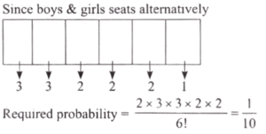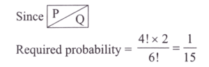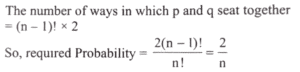 (Mathematics) NDA/NA SOLVED PAPER 2023 – II (101 to 120)Total Questions: 2011. If r is the coefficient of correlation between x and y, then what is the correlation coefficient between (3x + 4) and (- 3y + 3)?(a) -r(b) r(c) √3r(d) -√3rCorrect Answer: (a) -rSolution:12. A fair coin is tossed 6 times. What is the probability of getting a result in the 6th toss which is different from those obtained in the first five tosses?(a) 7/16(b) 1/16(c) 1/32(d) 1/64Correct Answer: (c) 1/32Solution:13. Find value?(a) 1(b) 14/17(c) 17/14(d) 1/31Correct Answer: (c) 17/14Solution:14. In a class, there are n students including the students Pand Q. What is the probability that P and Q sit together if seats are assigned randomly?(a) 1/n(b) 2/n(c) 4/n(d) 1/(2n)Correct Answer: (b) 2/nSolution:15. In a Binomial distribution B(n, p), n = 6 and 9P ( X = 4) = P(X = 2). What is p equal to?(a) 1/4(b) 1/2(c) 3/4(d) 4/5Correct Answer: (a) 1/4Solution:16. What is the probability that all three boys sit together?Three boys, P, Q, R an three girls S, T, U are to be arranged in a row for a group photograph.(a) 1/5(b) 1/4(c) -(d) 1/12Correct Answer: (a) 1/5Solution:17. What is the probability that boys and girls sit alternatively?Three boys, P, Q, R an three girls S, T, U are to be arranged in a row for a group photograph.(a) 4/5(b) 1/10(c) 5/6(d) 1/7Correct Answer: (b) 1/10Solution:18. What is the probability that no two girls sit together?(a) 2/5(b) 3/5(c) 1/18(d) 1/5Correct Answer: (d) 1/5Solution:19. What is the probability that P and Q take the two end positions?(a) 1/15(b) 7/15(c) 14/15(d) 11/45Correct Answer: (a) 1/15Solution:20. What is the probability that Q and U sit together?(a) 2/3(b) 1/4(c) 5/6(d) 1/3Correct Answer: (d) 1/3Solution:Submit Quiz« Previous12