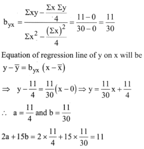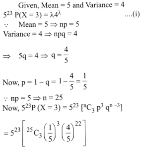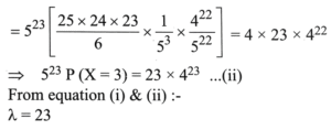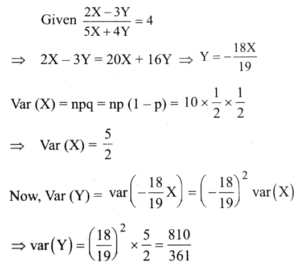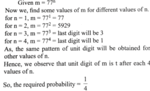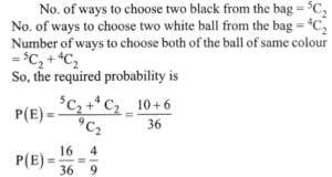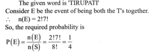 (Mathematics) NDA/NA SOLVED PAPER 2024 – I (101 to 120)Total Questions: 201. A bag contains 5 black and 4 white balls. A man selects two balls at random. What is the probability that both of these are of the same colour?(a) 1/6(b) 5/108(c) 4/9(d) 5/18Correct Answer: (c) 4/9Solution:2. If a random variable (x) follows binomial distribution with mean 5 and variance 4, 5²³ P(X = 3) = λ 4 λ , then what is the value of ?(a) 3(b) 5(c) 23(d) 25Correct Answer: (c) 23Solution:3. From data (-4, 1), (-1, 2), (2, 7) and (3, 1), the regression line of y on x is obtained as y = a + bx then what is the value of 2a + 15b?(a) 6(b) 11(c) 17(d) 21Correct Answer: (b) 11Solution:4. Let x + 2y + 1 = 0 and 2x + 3y + 4 = 0 are two lines of regression computed from some bivariate data. If θ is the acute angle between them, then what is the value of 488 tan 3θ?(a) 191(b) 161(c) 131(d) 121Correct Answer: (a) 191Solution:5. If two random variables X and Y are connected by relation 2x - 3y/5x + 4y = 4 and X follows Binomial distribution with parameters n = 10 and p = 1/2 then what is the variance of Y?(a) 810/361(b) 9/19(c) 21/361(d) 121/361Correct Answer: (a) 810/361Solution:6. If a, b, c are in HP, then what is 1/b - a + 1/b - c equal to?(A) 2/b(B) 1/a + 1/cc) 1/2 (1/a + 1/b + 1/c)Select the correct answer using the code given below:aaaaCorrect Answer: a7. An edible oil is sold at the rates 150, 200, 250, 300 rupees per litre in four consecutive years. Assuming that an equal amount of money is spent on oil by a family in every year during these years, what is the average price of oil in rupees (approximately) per litre?(a) 210(b) 220(c) 230(d) 240Correct Answer: (a) 210Solution:8. If the letters of the word "TIRUPATI" are written down at random, then what is the probability that both Ts are always consecutive?(a) 1/2(b) 1/4(c) 1/7(d) 1/14Correct Answer: (b) 1/4Solution:9. Let m =77ⁿ The index n is given a positive integral value at random. What is the probability that the value of m will have 1 in the units place?(a) 1/2(b) 1/3(c) 1/4(c) 1/nCorrect Answer: (c) 1/4Solution:10. Three different numbers are selected at random from the first 15 natural numbers. What is the probability that the product of two of the numbers is equal to third number?(a) 1/91(b) 2/455(c) 1/65(c) 1/65Correct Answer: (c) 1/65Solution:Submit Quiz12Next »
