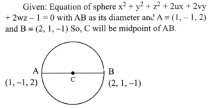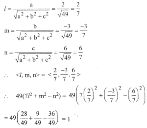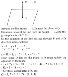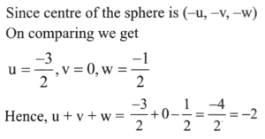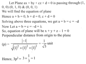 (Mathematics) NDA/NA SOLVED PAPER 2024 – I (51 to 100)Total Questions: 501. If (a, b) is the centre and c is the radius of the circle x² + y² + 2x + 6y + 1 = 0 then what is the value of a²+ b² + c²?(a) 19(b) 18(c) 17(d) 11Correct Answer: (a) 19Solution:2. If (1, - 1, 2) and (2, 1, -1) are the end points of a diameter of a sphere x² + y²+ z² + 2ux + 2vy + 2wz - 1 = 0 then what is u + v + w equal to?(a) -2(b) -1(c) 1(d) 2Correct Answer: (a) -2Solution:3. The number of points represented by the equation x = 5 on the xy-plane is(a) Zero(b) One(c) Two(d) infinitely manyCorrect Answer: (d) infinitely manySolution:4. If are the directions cosines of a normal to the plane 2x - 3y + 6z + 4 = 0 then what is the value of 49 (7l² + m² - n²)?(a) 0(b) 1(c) 3(d) 71Correct Answer: (b) 1Solution:5. A line through (1, -1, 2) with directions ratios meets the plane x + 2y + 3z = 18. What is the point of intersection of line and plane?(a) (4, 4, 1)(b) (2, 4, 1)(c) (4, 1, 4)(d) (3, 4, 7)Correct Answer: (c) (4, 1, 4)Solution:6. If p is the perpendicular distance from origin to the plane passing through (1, 0, 0), (0, 1, 0) and (0, 0, 1), then what is 3p² equal to ?(a) 4(b) 3(c) 2(d) 1Correct Answer: (d) 1Solution:7. If the directions cosines of a line are connected by relation l + 2m + n = 0, 2l - 2m + 3n = 0, then what is the value of l²+ m²- n²?(a) 1/101(b) 29/101(c) 41/101(d) 92/101Correct Answer: (b) 29/101Solution:8. If a variable line passes through the point of intersection of the lines x + 2y - 1 = 0 and 2x - y - 1 = 0 and meets the coordinate axes in A and B, then what is the locus of the mid-point of AB?(a) 3x + y = 10xy(b) x + 3y = 10xy(c) 3x + y = 10(d) x + 3y = 10Correct Answer: (b) x + 3y = 10xySolution:(b)9. What is the equation to the straight line passing through the point (- sin θ, cos θ) and perpendicular to the line x cos θ + y sin θ =9?(a) x sin θ - y cos θ - 1 = 0(b) x sin θ - y cos θ + 1 = 0(c) x sin θ - y cos θ = 0(d) x cos θ - y sin θ + 1 = 0Correct Answer: (b) x sin θ - y cos θ + 1 = 0Solution:10. Two points P and Q lie on line y = 2x + 3 These two points P and Q are at a distance 2 units from another point R(1, 5). What are the coordinates of the points P and Q?(a)(b)(c)(d)Correct Answer: (a)Solution:Submit Quiz12345Next »