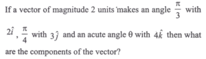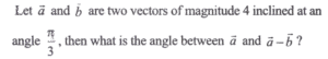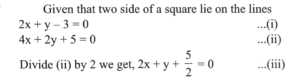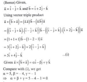 (Mathematics) NDA/NA SOLVED PAPER 2024 – I (51 to 100)Total Questions: 5011. If two sides of a square lie on the lines 2x + y - 3 = 0 and 4x + 2y + 5 = 0, then what is the area of the square in square units?(a) 6.05(b) 6.15(c) 6.25(d) 6.35Correct Answer: (a) 6.05Solution:= 6.05 square units.12. ABC is a triangle with A(3, 5) The mid-points of sides AB, AC are at (-1, 2), (6, 4) respectively. What are the coordinates of centroid of the triangle ABC?(a)(b)(c)(d)Correct Answer: (b)Solution:13. ABC is acute angled isosceles triangle. Two equal sides AB and AC lie on the lines 7x - y - 3 = 0 and x + y - 5 = 0. If θ is one of the equal angles, then what is cot θ equal to?(a) 1/3(b) 1/2(c) 2/3(d) 2Correct Answer: (b) 1/2Solution:(b)14. In the parabola y² = 8x, the focal distance . of a point P lying on it is 8 units. Which of the following statements is/are correct?(A) The coordinates of P can be (6, 4√3) (B) The perpendicular distance of P from the directrix of parabola is 8 units. Select the correct answer using the code given below:(a) A only(b) B only(c) Both A and B(d) Neither A nor BCorrect Answer: (c) Both A and BSolution:15. What is the eccentricity of the ellipse if the angle between the straight lines joining the foci to an extremity of the minor axis is 90°?(a) 1/3(b) 1/2(C) 1/√3(d) 1/√2Correct Answer: (d) 1/√2Solution:(d)16. Find the value?(a) 8(b) 7(c) 6(d) 1(e) None of the aboveCorrect Answer: (e) None of the aboveSolution:17. Find the value?(a) (1, √2, 1)(b) (1, -√2, 1)(c) (1, -√2, -1)(d) (1, √2, -1)Correct Answer: (a) (1, √2, 1)Solution:(a)18. Consider the following in respect of moment of a force(A) The moment of force about a point is independent of point of application of force. (B) The moment of a force about a line is a vector quantity. Which of the statements given above is/are correct?(a) A only(b) B only(c) Both A and B(d) Neither A nor BCorrect Answer: (b) B onlySolution:19. equal to?(a)(b)(c)(d)Correct Answer: (a)Solution:20. Find the value?(a) π/2(b) π/3(c) π/4(d) π/6Correct Answer: (b) π/3Solution:(b)Submit Quiz« Previous12345Next »