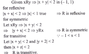 (Mathematics) NDA/NA SOLVED PAPER 2024 – I (01 to 50)Total Questions: 5021. What is the number of different matrices, each having 4 entries that can be formed using 1, 2, 3, 4 (repetition is allowed)?(a) 72(b) 216(c) 254(d) 768Correct Answer: (d) 768Solution:Possible order of matrices with 4 entries1 × 4, 2 × 2, 4 × 1Total number of matrices = 4 × 4 × 4 × 4 × 3 = 76822. Let A = {x ∈ R : - 1 < x < 1}. Which of the following is/are bijective functions from A to itself?(A) f(x) = x|x|(B) g(x) = cos(πx)Select the correct answer using the code given below:(a) A only(b) B only(c) Both A and B(d) Neither A nor BCorrect Answer: (a) A onlySolution:23. Let R be a relation on the open interval (-1, 1) and is given byR = {(x, y) : |x + y| < 2}. Then which of the following is correct?(a) R is reflexive but neither symmetric nor transitive(b) R is reflexive and symmetric but not transitive(c) R is reflexive and transitive but not symmetric(d) R is an equivalence relationCorrect Answer: (d) R is an equivalence relationSolution:24. For any three non-empty sets A, B, C, what is(A ∪ B) - {(A - B) ∪ (B - A) ∪ (A ∩ B)} is equal to?(a) Null set(b) A(c) B(d) ( A ∪ B) - (A ∩ B)Correct Answer: (a) Null setSolution:25. If a, b, c are the sides of triangle ABC, then what is(a) Zero(b) Area of triangle(c) Perimeter of triangle(d) a² + b² + c²Correct Answer: (a) ZeroSolution:26. If a, b, c are in AP; b, c, d are in GP; c, d, e are in HP, then which of the following is/are correct?(A) a, c and e are in GP(B) 1/a, 1/c, 1/e are in GPSelect the correct answer using the code given below:(a) A only(b) B only(c) Both A and B(d) Neither A nor BCorrect Answer: (a) A onlySolution:27. What is the number of solutions oflog₄ (x - 1) = log₂ (x - 3)?(a) Zero(b) One(c) Two(d) ThreeCorrect Answer: (b) OneSolution:28. Then the value of k can never be equal to?(a) -1(b) -1/2(c) 0(d) 1Correct Answer: (d) 1Solution:29. which of the following statements is/ are correct?(A) A⁻¹ = adjA(B) A is skew-symmetric matrix(C) A⁻¹ = AᵀSelect the correct answer using the code given below:(a) A only(b) A and B only(c) A and C(d) B and CCorrect Answer: (c) A and CSolution:30. What is the coefficient of x¹⁰ in the expansion of(a) -1(b) 1(c) 10(d) coefficient of x¹⁰ does not existCorrect Answer: (a) -1Solution:Submit Quiz« Previous12345Next »