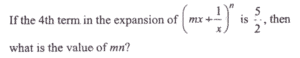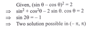 (Mathematics) NDA/NA SOLVED PAPER 2024 – I (01 to 50)Total Questions: 5031. Find the value?(a) -3(b) 3(c) 6(d) 12Correct Answer: (b) 3Solution:32. If a, b and c( a > 0, c > 0 )are in GP, then consider the following in respect of the equation ax² + bx + c = 0 :(A) The equation has imaginary roots.(B) The ratio of the roots of the equation is 1: ω where ω is a cube root of unity.(C) The product of roots of the equation is (b²/(a²)(a) (A) and (B) only(b) (B) and (C) only(c) (A) and (C) only(d) (A), (B) and (C)Correct Answer: (d) (A), (B) and (C)Solution:33. x² + mx + n is an integer for all integral values of x, then which of the following is/ are correct?(A) m must be an integer(B) n must be an integerSelect the correct answer using the code given below:(a) A only(b) B only(c) Both (A) and (B)(d) Neither (A) nor BCorrect Answer: (c) Both (A) and (B)34. Find the value?(a) 1(b) 2(c) 4(d) 8Correct Answer: (a) 1Solution:35. Let A = {1, 2, 3, 4, 5} and B = {6, 7\ What is the number of onto functions from A to B?(a) 10(b) 20(c) 30(d) 32Correct Answer: (c) 30Solution:36. equal to?(a) 1(b) √3(c) 30(d) 4Correct Answer: (d) 4Solution:37. what is (sin 9° - cos 9°) is equal to?(a)(b)(d)(c)Correct Answer: (c)Solution:38. Where a,b,c are sides of the triangle?(a) a + b + c(b) ab + bc + ca(c) (a + b) (b + c) ( c + a)(d) 0Correct Answer: (d) 0Solution:39. If cos⁻¹ x = sin⁻¹ x, then which one of the following is correct?(a) x = 1(b) x = 1/2(c) x = 1/√2(d) x = 1/√3Correct Answer: (c) x = 1/√2Solution:40. What is the number of solutions of (sinθ- cosθ)² = 2 where - π < θ < π ?(a) Only one(b) Only two(c) Four(d) No solutionCorrect Answer: (b) Only twoSolution:Submit Quiz« Previous12345Next »