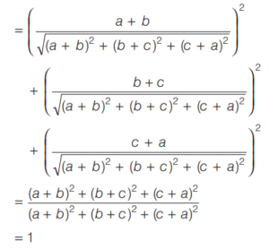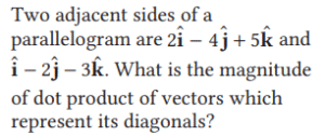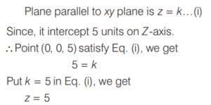 Mathematics (NDA SOLVED PAPER 2020 – II) (51 to 100)Total Questions: 5011. What is the length of the diameter of the sphere whose centre is at (1, -2, 3) and which touches the plane 6x - 3y + 2z - 4 = 0?(a) 1 unit(b) 2 units(c) 3 units(d) 4 unitsCorrect Answer: (d) 4 unitsSolution:12. What is the perpendicular distance from the point (2, 3, 4) to the line(a) 6 units(b) 5 units(c) 3 units(d) 2 unitsCorrect Answer: (b) 5 unitsSolution:13. If a line has direction ratios <a>, then what is the sum of the squares of its direction cosines?(a) (a + b + c)²(b) 2( a + b + c)(c) 3(d) 1Correct Answer: (d) 1Solution:14. Into how many compartments do the coordinate planes divide the space?(a) 2(b) 4(c) 8(d) 16Correct Answer: (c) 8Solution:The coordinate planes divides the spaces into 8 compartment.15. What is the equation of the plane which cuts an intercept 5 units on the Z-axis and is parallel to XY-plane?(a) x + y = 5(b) z = 5(c) z = 0(d) x + y + z = 5Correct Answer: (b) z = 5Solution:16. Find the value?(a)(b)(c)(d)Correct Answer: (a)Solution:17. Let A be a point in space such that |OA| = 12 , where O is the origin. If OA is inclined at angles 45° and 60° with X -axis and Y -axis respectively, then what is OA equal to?(a)(b)(c)(d)Correct Answer: (c)Solution:18. Find the value?(a) 21(b) 25(c) 31(d) 36Correct Answer: (c) 31Solution:19. Solve it?(a) 3(b) 4(c) 6(d) 8Correct Answer: (a) 3Solution:20. Find the value?(a) 1(b) − 1(c) 5(d) − 5Correct Answer: (b) − 1Solution:Submit Quiz« Previous12345Next »