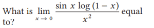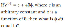 Mathematics (NDA SOLVED PAPER 2020 – II) (51 to 100)Total Questions: 5021. Solve it?(a) 1(b) 2(c) 3(d) 6Correct Answer: (d) 6Solution:22. The radius of a circle is increasing at the rate of 0.7 cm/sec. What is the rate of increase of its circumference?(a) 4.4 cm/sec(b) 8.4 cm/sec(c) 8.8 cm/sec(d) 15.4 cm/secCorrect Answer: (a) 4.4 cm/secSolution:23. Find the value?(a) 2/3(b) 4/3(c) 8/3(d) 4Correct Answer: (c) 8/3Solution:24. The order and degree of the differential equation(a) 1 and 1(b) 2 and 3(c) 2 and 4(d) 1 and 4Correct Answer: (b) 2 and 3Solution:25. Solve it?(a) − 1(b) Zero(c) − e(d) − 1/eCorrect Answer: (a) − 1Solution:26. If f(x) = 3x² - 5x + p and f(0) and f(1) are opposite in sign, then which of the following is correct?(a) -2 < p < 0(b) -2 < p < 2(c) 0 < p < 2(d) 3 < p < 5Correct Answer: (c) 0 < p < 2Solution:27. Find the value?(a) θdΦ(b) - θdΦ(c) 4θdΦ(d) -4θdΦCorrect Answer: (b) - θdΦSolution:28. Find the value?(a)(b)(c)(d)Correct Answer: (b)Solution:29. What is the value of(a) 1/4(b) 1/2(c) 1(d) 2Correct Answer: (b) 1/2Solution:30. Let y = 3x² + 2. If x changes from 10 to 10.1, then what is the total change in y?(a) 4.71(b) 5.23(c) 6.03(d) 8.01Correct Answer: (c) 6.03Solution:Submit Quiz« Previous12345Next »