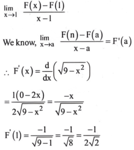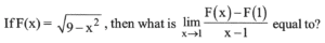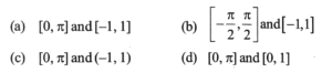 (Mathematics-Part-2) NDA/NA Solved Paper 2017-ITotal Questions: 5021. Solve the following equation:(a) 0(b) 1/2(c) 1(d) 2Correct Answer: (b) 1/2Solution:22. Solve the following equation:(a) 1/2(b) 1(c) √3(d) None of the aboveCorrect Answer: (b) 1Solution:23. Solve the following equation: (a)(b)(c)(d)Correct Answer: (d)Solution:24. The function f: X→Y defined by f(x) = cos x, where x ∈ X, is one-one and on to if X and Y are respectively equal to(a)(b)(c)(d)Correct Answer: (a)Solution:Observe the cosx graph in the figure. It is clear that, function is one - one and onto when x and y are [o, π] and [-1, 1]25. Solve the following equation: (a)(b)(c)(d)Correct Answer: (b)Solution:26. Solve the following equation: (a)(b)(c)(d)Correct Answer: (d)Solution:27. Let f:[-6, 6] → R be defined by f (x) =x² - 3. Consider the following:1. (f°f°S)(-1) = (f°f°f) (1) 2. (f°f°f) (-1) -4 (f°f°f) (1) = (f°f) (0) Which of the above is/are correct?(a) 1 only(b) 2 only(c) Both I and 2(d) Neither 1 nor 2Correct Answer: (c) Both I and 2Solution:28. Let f(x)=px + q and g(x)=mx + n. Then f (g(x)) =g(f (x)) is equivalent to(a) f (p) = g (m)(b) f (q) = g (n)(c) f (n) = g (q)(d) f (m) = g (p)Correct Answer: (c) f (n) = g (q)Solution:29. Solve the following equation: (a)(b)(c)(d)Correct Answer: (c)Solution:30. What is dx²/dy² equal to?(a)(b)(c)(d)Correct Answer: (c)Solution:Submit Quiz« Previous12345Next »