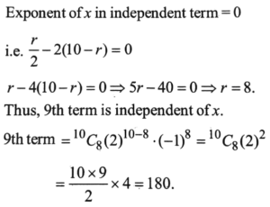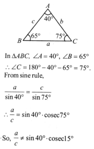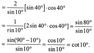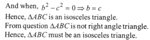 Mathmatics NDA/NA Solved Paper 2020-I (1-50)Total Questions: 5041. The value of ordinate of the graph of y = 2 + cos𝓍 lies in the interval(a) [0, 1](b) [0, 3](c) [- 1, 1](d) [1, 3]Correct Answer: (d) [1, 3]Solution:42. What is the value of 8 cos 10°. cos 20° . cos 40° ?(a) tan 10°(b) cot 10°(c) cosec 10°(d) sec 10°Correct Answer: (b) cot 10°Solution: 43. What is the value of cos 48° - cos 12° ?(a)(b)(c)(d)Correct Answer: (b)Solution:44. Consider the following statements :(1) If ABC is a right-angled triangle, rightangled at A and if sin B = 1/3 , then cosec C = 3. (2) If b cos B = c cos C and if the triangle ABC is not right-angled, then ABC must be isosceles. Which of the above statements is/are correct ?(a) 1 only(b) 2 only(c) Both 1 and 2(d) Neither 1 nor 2Correct Answer: (b) 2 onlySolution: 45. Consider the following statements :(1) If in a triangle ABC, A = 2B and b = c, then it must be an obtuse-angled triangle. (2) There exists no triangle ABC with A = 40°, B = 65° and a/c = sin 40° cosec 15°. Which of the above statements is/are correct ?(a) 1 only(b) 2 only(c) Both 1 and 2(d) Neither 1 nor 2Correct Answer: (b) 2 onlySolution:Consider a right angle triangle ABC, right angle at A and B = C = 45º. Then, b = c is also true. Hence, for the given condition, △ABC must not be an obtuse-angled triangle. Hence, △ABC is not possible. Thus, statements (2) is correct.46. Solve the following equation? Which one of the following is correct ? (a)(b)(c)(d)Correct Answer: (c)Solution:A square M matrix is said to be Hermitian (or self-adjoint) if it is equal to its. Own Hermitian conjugate, i.e. 47. Solve the following equation?(a) 180(b) 120(c) 90(d) 72Correct Answer: (a) 180Solution:48. Solve the following equation?(a) 32(b) 64(c) 2048(d) 4096Correct Answer: (b) 64Solution:49. If C(20, n + 2) = C(20, n - 2), then what is n equal to?(a) 18(b) 25(c) 10(d) 12Correct Answer: (c) 10Solution:50. For how many values of k, is the matrix(a) Only one(b) Only two(c) Only four(d) InfiniteCorrect Answer: (d) InfiniteSolution:For singular matrix, Hence, for all values of K, given matrix is singular matrix.Submit Quiz« Previous12345