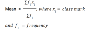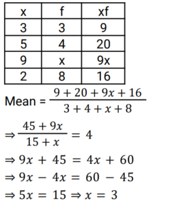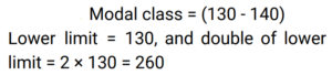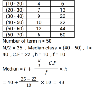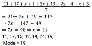 Mean, Median & Mode (Railway Maths) (Part – I)Total Questions: 5021. What is the mean of the first five Triangular Numbers? [RRB ALP Tier - I 10/08/2018 (Morning) ](a) 7(b) 6(c) 8(d) 5Correct Answer: (a) 7Solution:22. For a grouped data, if xᵢ is the class mark and fᵢ is the corresponding is the corresponding frequency, then by direct method, mean x is given by: [Group D 22/08/2022 (Afternoon)](a) Σxᵢ / Σfᵢ(b) Σfᵢxᵢ / Σfᵢ(c) Σfᵢxᵢ / Σxᵢ(d) ΣfᵢxᵢCorrect Answer: (b) Σfᵢxᵢ / ΣfᵢSolution:23. Find the arithmetic mean of 5, 15, 23, 26 and 29. [Group D 23/08/2022 (Evening)](a) 20.6(b) 18.6(c) 19.6(d) 17.6Correct Answer: (c) 19.6Solution:24. Which of the following is the correct empirical formula? [Group D 24/08/2022 (Morning) ](a)(b)(c)(d)Correct Answer: (a)Solution:25. Find the median of: [Group D 24/08/2022 (Morning) ](a) 40(b) 43(c) 42(d) 41Correct Answer: (b) 43Solution:26. If the mean of the data 11, 17, x + 1, 3x, 19, 2x - 4, x + 5 is 21, then find the mode of the data. [Group D 24/08/2022 (Afternoon) ](a) 17(b) 15(c) 11(d) 19Correct Answer: (d) 19Solution:27. If the mean of the following data is 4, find the missing frequency. [Group D 24/08/2022 (Evening) ](a) 5(b) 4(c) 7(d) 3Correct Answer: (d) 3Solution:28. The frequency distribution here gives the monthly consumption of electricity of 60 consumers of a locality. What is the median of the data? [Group D 25/08/2022 (Morning) ](a) 80.5(b) 83.1(c) 82.4(d) 81.2Correct Answer: (a) 80.5Solution:29. Find the double of the lower limit of the modal class in the given data. [Group D 25/08/2022 (Afternoon) ](a) 540(b) 280(c) 260(d) 68Correct Answer: (c) 260Solution:30. Find the mean of the following data. [Group D 25/08/2022 (Evening) ](a) 8.65(b) 3.68(c) 4.95(d) 6.52Correct Answer: (c) 4.95Solution:Submit Quiz« Previous12345Next »