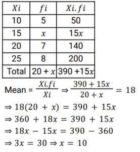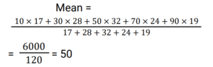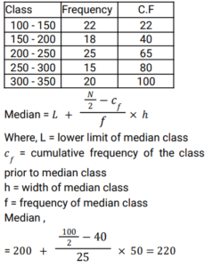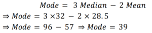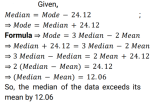 Mean, Median & Mode (Railway Maths) (Part – I)Total Questions: 5041. The mean and the mode of a set of data are 58.7 and 61.1, respectively. Find the median of the data, using the empirical formula. [Group D 02/09/2022 (Morning)](a) 54.6(b) 55.2(c) 55.8(d) 59.5Correct Answer: (d) 59.5Solution:42. For a data, if the mean is 28.5 and the median is 32, then the mode using empirical formula is: [Group D 02/09/2022 (Afternoon)](a) 40(b) 42(c) 39(d) 41Correct Answer: (c) 39Solution:43. If the median of a data is 24.12 less than its mode, then the median of the data exceeds its mean by _____. (Use the empirical formula to find the answer) [Group D 05/09/2022 (Afternoon)](a) 16.08(b) 12.06(c) 6.03(d) 8.04Correct Answer: (b) 12.06Solution:44. The heights of six students in a school are 160 cm, 175 cm, 142 cm, 136 cm, 148 cm, and 182 cm. Find the mean of their heights (in cm) (Rounded off to 2 decimal places). [Group D 05/09/2022 (Afternoon)](a) 152.55(b) 160.47(c) 147.57(d) 157.17Correct Answer: (d) 157.17Solution:45. What is the median of following distribution? [Group D 05/09/2022 (Evening) ](a) 240(b) 220(c) 225(d) 210Correct Answer: (b) 220Solution:46. For certain data, the mode is 24.6 and mean is 20.1. What is the median of that data? [Group D 06/09/2022 (Afternoon)](a) 23.5(b) 24.1(c) 21.6(d) 22.2Correct Answer: (c) 21.6Solution:We know that, 3 median = 2 mean + mode 3 × median = 2 × 20.1 + 24.6 3 × median = 64.8 Therefore, median = 21.647. Find the mode of the following data. 66, 69, 83, 69, 84, 74, 71, 83, 69, 84, 73, 83, 69, 71, 84, 74, 83, 66, 74, 71, 83, 66, 90, 90 [Group D 06/09/2022 (Evening)](a) 74(b) 90(c) 84(d) 83Correct Answer: (d) 83Solution:By arranging the numbers in ascending order 66,66,66,69,69,69,69,71,71,71,73,74,74,74,83,83,83,83,83,84,84,84,90,90 The most frequent number (mode) = 8348. If the mean of the following data is 18, then the value of x is: [Group D 08/09/2022 (Afternoon) ](a) 13(b) 10(c) 9(d) 11Correct Answer: (b) 10Solution:49. What is the mean of the following distribution? [Group D 09/09/2022 (Afternoon) ](a) 51(b) 49.2(c) 50(d) 52.4Correct Answer: (c) 50Solution:50. The arithmetic mean of the observations 39, 49, 59, 60, 70, 80, 90, 93 and 90 is: [Group D 12/09/2022 (Afternoon) ](a) 78(b) 79(c) 70(d) 76Correct Answer: (c) 70Solution:Submit Quiz« Previous12345