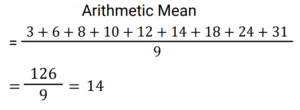 2. The arithmetic mean of the observations 3, 6, 8, 10, 12, 14, 18, 24 and 31 is: [Group D 13/09/2022 (Afternoon) ]
