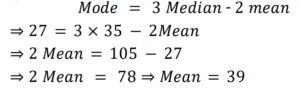 = Mode = 3 × Median - 2 × Mean