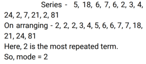 Arranging in ascending order, 11, 13, 13, 13, 15, 17, 17, 18, 18, 19 Mode is the value which occurs the maximum number of times in the given data set. Hence, Mode = 13