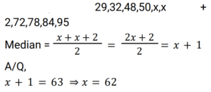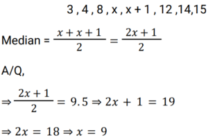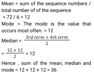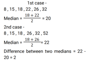 Mean, Median & Mode (Railway Maths) (Part – IV)Total Questions: 5031. Find the median of the given data. 20, 28, 32, 48, 20, 18, 16, 2, 30, 14 [RRB NTPC 21/03/2021 (Evening)](a) 24(b) 48(c) 20(d) 22Correct Answer: (c) 20Solution:32. Find the median of the given data. 25, 18, 20, 16, 8, 10, 15, 20, 13, 30 [RRB NTPC 27/03/2021 (Morning)](a) 30(b) 17(c) 20(d) 15Correct Answer: (b) 17Solution:33. The given data is arranged in ascending order. The median of the data is 63. Find the value of x. 29, 32, 48, 50, x, x + 2, 72, 78, 84, 95 [RRB NTPC 27/03/2021 (Morning)](a) 62(b) 64(c) 60(d) 63Correct Answer: (a) 62Solution:34. The median of observations k − 3/2, k + 2, k − 1, k + 4, k + 1/2, k − 3, k + 4 1/2 is ______. [RRB NTPC 01/04/2021 (Evening)](a) k − 3/2(b) k + 1/2(c) k − 1(d) k + 2Correct Answer: (b) k + 1/2Solution:35. Find the sum of the mean, the median and the mode of the given data.10, 8, 18, 12, 12, 12 [RRB NTPC 03/04/2021 (Evening)](a) 30(b) 24(c) 36(d) 12Correct Answer: (c) 36Solution:36. In the given data, if 22 is replaced by 52, find the difference between two medians. 26, 15, 8, 32, 18, 22 [RRB NTPC 03/04/2021 (Evening)](a) 2(b) 3(c) 5(d) 6Correct Answer: (a) 2Solution:37. A raw data is in ascending order i.e. 3, 4, 8, x, x + 1, 12, 14, 15. If the median of this data is 9.5, then the value of x is: [RRB NTPC 05/04/2021 (Morning)](a) 7(b) 9(c) 4(d) 11Correct Answer: (b) 9Solution:38. Given data is arranged in an ascending order. If the median is 10, then find the value of p. 3, 5, 6, 2p + 3, 3p + 2, 15, 25, 51. [RRB NTPC 06/04/2021 (Evening) ](a) 3(b) 27.5(c) 38(d) 2Correct Answer: (a) 3Solution:39. Histogram is used to find: [RRB NTPC 07/04/2021 (Evening)](a) arithmetic mean graphically(b) median, mode and mean graphically(c) median graphically(d) mode graphicallyCorrect Answer: (d) mode graphicallySolution:The histogram is a popular graphing tool. It is used to summarize discrete or continuous data that are measured on an interval scale. First described by Karl Pearson.40. Read the given data and answer the question that follows. 2, 5, 15, 25, 20, 12, 8, 7, 6, 16, 21, 17, 30, 32, 23, 40, 51, 15, 2, 9, 57, 19, 25. If the given data is grouped in the classes 0–5, 5–10, 10–15, and so on, then what will be the frequency of the class 20–25? [RRB NTPC 07/04/2021 (Evening)](a) 4(b) 3(c) 5(d) 2Correct Answer: (b) 3Solution:2,5,15,25,20,12,8,7,6,16,21,17, 30,32,23,40,51,15,2,9,57,19,25. The numbers lies between 20 - 25 = (20, 21, 23) The frequency of class 20 - 25 = 3Submit Quiz« Previous12345Next »