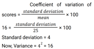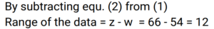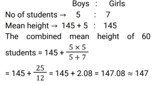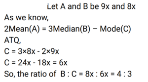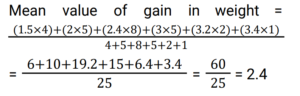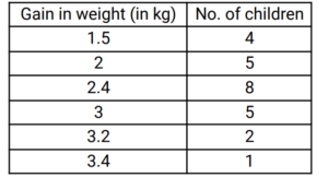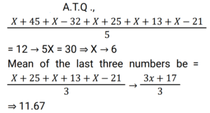 Mean, Median & Mode (Railway Maths) (Part – V)Total Questions: 2011. If the mean of x + 45, x – 32, x + 25, x + 13 and x – 21 is 12, then what will be the mean of the last three observations? [ALP Tier II 08/02/2019 (Morning)](a) 15.67(b) 14.67(c) 12.67(d) 11.67Correct Answer: (d) 11.67Solution:12. The mean height of 25 boys in a class is 150cm, and the mean height of 35 girls in the same class is 145 cm. The combined mean height of 60 students in the class is _____________(approximately) [RRB ALP 09/08/2018 (Afternoon) ](a) 147(b) 145(c) 146(d) 143Correct Answer: (a) 147Solution:13. Four numbers, when arranged in ascending order, are w, x, y and z. The average of the smallest three numbers is 18, while the average of the largest three was 22. What is the range of the data ? [RRB ALP 09/08/2018 (Evening) ](a) 10(b) 11(c) 12(d) 13Correct Answer: (c) 12Solution:14. In a cricket match, the scores of the players are considered such that coefficient of variation of scores is 16 and mean is 25. then the variance is : [RRB ALP 14/08/2018 (Morning)](a) 12(b) 8(c) 16(d) 4Correct Answer: (c) 16Solution:15. If A, B and C are denoting Mean, Median and Mode of a data and A : B = 9 : 8 then the ratio of B : C is: [RRB ALP 17/08/2018 (Afternoon)](a) 5 : 4(b) 8 : 9(c) 7 : 6(d) 4 : 3Correct Answer: (d) 4 : 3Solution:16. The sum of 15 observations of a data is (434 + x). If the mean of the data is x, then the value of x is [RRB ALP 20/08/2018 (Afternoon)](a) 25(b) 33(c) 27(d) 31Correct Answer: (d) 31Solution:17. A sequence a, ax, ax² _____ axⁿ has odd number of terms. Then the median is [RRB ALP 20/08/2018 (Evening)](a)(b)(c)(d)Correct Answer: (d)Solution:18. The following table shows the gain in weight by 25 children in a year. What is the mean value of gain in weight? [RRB ALP 29/08/2018 (Afternoon) ](a) 3.2(b) 2.1(c) 2.4(d) 1.9Correct Answer: (c) 2.4Solution:19. The mean of the 5 smallest numbers from a group is 15 while the mean of all the numbers of the group taken together is 17. If the mean of the numbers leaving the smallest five out is 18.25, how many numbers were there in the group in all? [RRB ALP 29/08/2018 (Afternoon)](a) 14(b) 8(c) 13(d) 12Correct Answer: (c) 13Solution:20. Given below are the ages (in years) of a group of children. What is the median age? 7, 9, 8, 6, 5, 3, 9, 2. [RRB ALP 31/08/2018 (Morning)](a) 6.5(b) 5(c) 6.125(d) 6Correct Answer: (a) 6.5Solution:Submit Quiz« Previous12