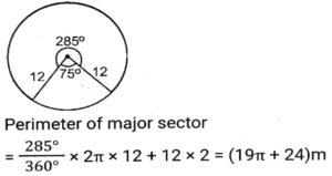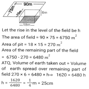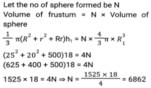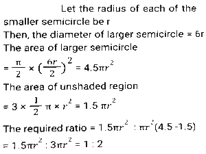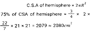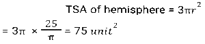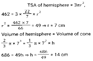 Mensuration (Part-11)Total Questions: 5041. If the numerical value of twice the curved surface area of a right circular cylinder is equal to the numerical value of its volume, then what is the numerical value of the radius of the base of the cylinder? [SSC CGL 13/12/2022 (1st Shift)](a) 2(b) 3(c) 5(d) 4Correct Answer: (d) 442. A field is in the shape of a rectangle of length 90 m and breadth 75 m. In one corner of the field, a pit, which is 18 m long,15 m broad and 6 m deep, has been dug out. The Earth taken out of it is evenly spread over the remaining part of the field. Find the rise in the level of the field? [SSC CPO 09/11/2022 (Morning)](a) 27 cm(b) 25 cm(c) 28 cm(d) 24 cmCorrect Answer: (b) 25 cmSolution:43. In the given figure, the length of arc AB is equal to twice the length of radius r of the circle. Find the area of sector OAB in terms of the radius r. [SSC CPO 09/11/2022 (Morning)](a) 3r(b) 2r(c) πr²(d) r²Correct Answer: (d) r²Solution:44. Determine the total surface area of a hemisphere closed at bottom. [SSC CPO 09/11/2022 (Morning)](a) 75 unit²(b) 70 unit²(c) 60 unit²(d) 50 unit²Correct Answer: (a) 75 unit²Solution:45. Find the perimeter of major sector of a circle of radius 12 metres, whose minor sector subtends an angle of 75° at the centre. [SSC CPO 09/11/2022 (Morning)](a) 24 + 5π metres(b) 24 + 19π metres(c) 24 - 5π metres(d) 24 - 19π metresCorrect Answer: (b) 24 + 19π metresSolution:46. A frustum of a right circular cone, whose height is 18 cm, large base radius is 25 cm, and small base radius is 20 cm, is melted to form a small sphere of diameter 2 cm. How many spheres will be formed? [SSC CPO 09/11/2022 (Afternoon)](a) 6287(b) 6862(c) 4575(d) 5857Correct Answer: (b) 6862Solution:47. The radius of a hollow sphere is 21 cm. It is cut into two equal halves by a plane passing through its centre. What is 75% of the curved surface area (in cm², rounded off to the nearest tens) of the hemisphere? (Take π = 22/7) [SSC CPO 09/11/2022 (Evening)](a) 4160(b) 3470(c) 2080(d) 2770Correct Answer: (c) 2080Solution:48. The total surface area of a solid metallic hemisphere is 462cm². This is melted and moulded into a right circular cone. If the radius of the base of the cone is the same as that of the hemisphere, then its height is: (use π = 22/7) [SSC CPO 09/11/2022 (Evening)](a) 14 cm(b) 7 cm(c) 21 cm(d) 28 cmCorrect Answer: (a) 14 cmSolution:49. As shown in the given figure, inside the large semicircle, three semicircles (with equal radii) are drawn so that their diameters all sit on the large semicircle's diameter. What is the ratio between the unshaded and shaded areas? [SSC CPO 09/11/2022 (Evening)](a) 4 : 3(b) 1 : 2(c) 2 : 1(d) 3 : 4Correct Answer: (b) 1 : 2Solution:50. What is the length of the longest pole that can fit itself in a hall 60 feet long, 30 feet broad and 20 feet high? [SSC CPO 10/11/2022 (Morning)](a) 50 ft.(b) 70 ft.(c) 30 ft.(d) 20 ft.Correct Answer: (b) 70 ft.Solution:Submit Quiz« Previous12345