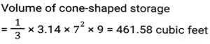 7. A cone-shaped storage tank's height and radius are 9 and 7 feet, respectively. Determine how much liquid the tank can contain. (Take π = 3.14) [SSC CPO 11/11/2022 (Morning)]