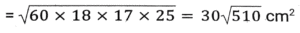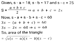 10. The difference between the semi -perimeter and the sides of △PQR are 18 cm, 17 cm and 25 cm, respectively. Find the area of the triangle [SSC CPO 11/11/2022 (Evening)]