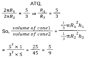 5. The heights of two right circular cones are in the ratio 1 : 5 and the perimeter of their bases are in the ratio 5 : 3. Find the ratio of their volumes. [SSC CPO 10/11/2022 (Evening)]