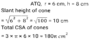 4. A cylinder of height 8 cm and radius 6 cm is melted and converted into 3 cones of the same radius and height that of cylinder. Determine the total curved surface area of cones. [SSC CPO 10/11/2022 (Evening)]