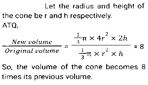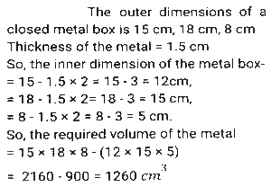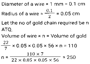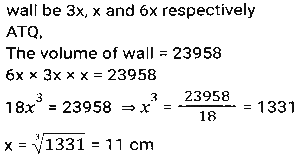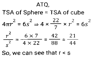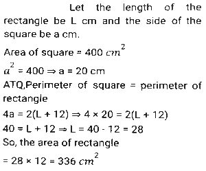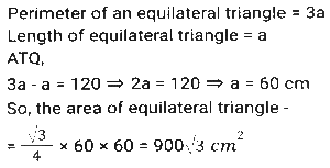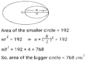 Mensuration (Part-12)Total Questions: 5021. A goat is tied with a 10.5 m-long rope to one corner of a plot which is in the shape of an equilateral triangle each side of which is 16 m long. Find the area that the goat can graze on. [SSC MTS 05/07/2022 (Morning)](a) 62.25 m²(b) 53.5 m²(c) 57.75 m²(d) 51.75 m²Correct Answer: (c) 57.75 m²Solution:22. If the height and the radius of the base of a cone are both doubled, the volume of the cone becomes ______ of its previous volume. [SSC MTS 05/07/2022 (Morning)](a) 4 times(b) 3 times(c) 6 times(d) 8 timesCorrect Answer: (d) 8 timesSolution:23. A smaller circle touches a bigger circle internally and also passes through the centre 'O' of the bigger circle. If the area of the smaller circle is 192cm², the area of the bigger circle (in cm²) is : [SSC MTS 05/07/2022 (Evening)](a) 768(b) 384(c) 1024(d) 720Correct Answer: (a) 768Solution:24. The perimeter of a square is equal to the perimeter of a rectangle, and the latter has a width of 12 cm. The area of the square is 400cm². Find the area of the rectangle. [SSC MTS 06/07/2022 (Morning)](a) 412 cm²(b) 394 cm²(c) 324 cm²(d) 336 cm²Correct Answer: (d) 336 cm²Solution:25. If the total surface area of a sphere of radius r cm is equal to the total surface area of a cube of side s cm, which of the following is true? [SSC MTS 06/07/2022 (Morning)](a) r > s(b) r ≥ s(c) r = s(d) r < sCorrect Answer: (d) r < sSolution:26. The volume of a wall whose height is six times its breadth and length is half its height, is 23958 cm³. What is the breadth of the wall? [SSC MTS 06/07/2022 (Afternoon)](a) 21 cm(b) 15 cm(c) 11 cm(d) 18 cmCorrect Answer: (c) 11 cmSolution:27. A goldsmith uses 110 cm³ of gold to make a wire 1 mm in diameter. He will use this wire to make gold chains of equal lengths. If each chain requires 56 cm length of wire, then how many gold chains can he make? [use π = 22/7] [SSC MTS 07/07/2022 (Morning)](a) 320(b) 250(c) 160(d) 210Correct Answer: (b) 250Solution:28. The measures of the outer dimensions of a closed metal box are given as 15 cm x 18 cm x 8 cm. The thickness of the metal is 1.5 cm. What will be the volume of the metal required to make the box? [SSC MTS 07/07/2022 (Evening)](a) 1680 cm³(b) 950 cm³(c) 1440 cm³(d) 1260 cm³Correct Answer: (d) 1260 cm³Solution:29. The length of a side of an equilateral triangle is 120 cm less than its perimeter. What is the area of the equilateral triangle? [SSC MTS 07/07/2022 (Evening)](a) 1800√3 cm²(b) 900√3 cm²(c) 450√3 cm²(d) 1200√3 cm²Correct Answer: (b) 900√3 cm²Solution:30. The volume of a cuboid is 3300 cm³. The sum of the length and the breadth of the cuboid is 37 cm. If the difference between the length and the breadth of the cuboid is 13 cm, then what is the height of the cuboid? [SSC MTS 08/07/2022 (Morning)](a) 18 cm(b) 11 cm(c) 14 cm(d) 16 cmCorrect Answer: (b) 11 cmSolution:Submit Quiz« Previous12345Next »