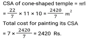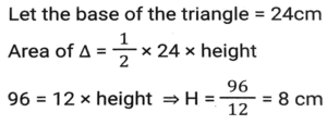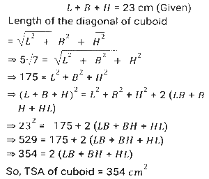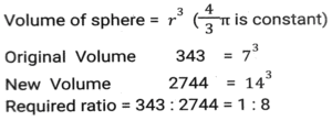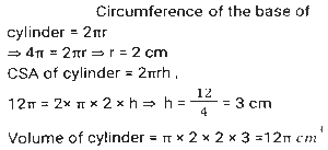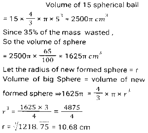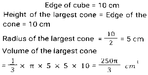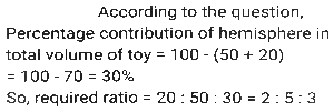 Mensuration (Part-13)Total Questions: 5011. A rectangular water tank is 1.5 m high, 3m long and 3.5 m wide. How much water (in litres) can it hold? [SSC CHSL 25/05/2022 (Evening)](a) 13520(b) 14510(c) 15750(d) 11780Correct Answer: (c) 15750Solution:12. What is the volume of the largest right circular cone that can be cut out from a cube whose edge is 10 cm ? [SSC CHSL 26/05/2022 (Morning)](a)(b)(c)(d)Correct Answer: (a)Solution:13. 15 identical solid spherical balls of radius 5 cm are melted to form a single sphere. In this process, 35% of the mass is wasted. What is the radius (in cm) of the single sphere that is now formed? [Use π = 22/7 and give your answer correct to two decimal places.] [SSC CHSL 26/05/2022 (Evening)](a) 12.68(b) 16.68(c) 10.68(d) 34.68Correct Answer: (c) 10.68Solution:14. As air is pumped into a spherical balloon, its radius increases from 7 cm to 14 cm. Find the ratio of volume of the balloon's in both circumstances. [SSC CHSL 27/05/2022 (Morning)](a) 2:5(b) 1:9(c) 1:8(d) 3:7Correct Answer: (c) 1:8Solution:15. A solid right-circular cylinder, whose radius of the base is 15 cm and height is 12 cm, is melted and moulded into the solid right-circular cone, whose radius of the base is 24 cm. What will be the height of this cone? [SSC CHSL 27/05/2022 (Evening)](a) 14.0625 cm(b) 14.0675 cm(c) 14.6025 cm(d) 14.0525 cmCorrect Answer: (a) 14.0625 cmSolution:16. A solid toy is in the shape which is a combination of a cylinder, cone and a hemispherical bowl. The cylinder contributes to 50% of the total volume of the toy, the cone contributes to 20% of the volume. Find the ratio of the contribution (in terms of volume) of the cone, cylinder and hemisphere. [SSC CHSL 30/05/2022 (Afternoon)](a) 2:3:5(b) 5:2:3(c) 2:5:3(d) 4:5:3Correct Answer: (c) 2:5:3Solution:17. What is the volume (cm³)of a right circular cylinder whose curved surface area is 12π cm² and the circumference of its base is 4π cm ? [SSC CHSL 30/05/2022 (Evening)](a) 48π(b) 36π(c) 12π(d) 24πCorrect Answer: (c) 12πSolution:18. The sum of the length, breadth and depth of a cuboid is 23 cm, and its diagonal is 5√7 cm. Its total surface area (cm²) is: [SSC CHSL 31/05/2022 (Morning)](a) 144(b) 354(c) 188(d) 111Correct Answer: (b) 354Solution:19. A cone-shaped temple top has slant height of 10 m and radius of base is 11 m. Find the total cost for painting its curved surface area at the rate of ₹7/m². [SSC CHSL 31/05/2022 (Afternoon)](a) ₹2440(b) ₹2040(c) ₹2420(d) ₹2240Correct Answer: (c) ₹2420Solution:20. The area of a triangle is 96cm² and the length of one of its sides is 24 cm. What is the length of the perpendicular drawn to this side of the triangle from the opposite vertex? [SSC CHSL 01/06/2022 (Morning)](a) 16 cm(b) 8 cm(c) 4 cm(d) 12 cmCorrect Answer: (b) 8 cmSolution:Submit Quiz« Previous12345Next »