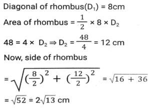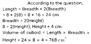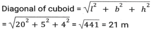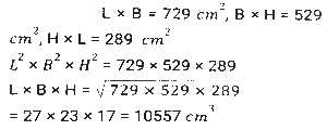 Mensuration (Part-13)Total Questions: 5021. Find the volume(in cm³) of the cuboid, if its length is twice more than its breadth and its breadth is 8 cm, which is twice its height. [SSC CHSL 01/06/2022 (Afternoon)](a) 768(b) 769(c) 767(d) 766Correct Answer: (a) 768Solution:22. If the length of a cuboid is 20 m, breadth is 5 m and height is 4 m, then find the length of diagonal of the cuboid. [SSC CHSL 01/06/2022 (Evening)](a) 12 m(b) 21 m(c) 18 m(d) 24 mCorrect Answer: (b) 21 mSolution:23. The radius of a hemispherical bowl is given as 7 cm. What is the capacity (cm³) of the bowl ? [π = 22/7] [SSC CHSL 02/06/2022(Afternoon)](a)(b)(c)(d)Correct Answer: (a)Solution:24. The length of each side of a regular hexagon is 10 cm. What is the area (cm²) . of the hexagon ? [SSC CHSL 02/06/2022 (Evening)](a) 156√3(b) 144√3(c) 148√3(d) 150√3Correct Answer: (d) 150√3Solution:25. The area of a square is 9m² + 12m + 4. Find the measure of the side of the square. [SSC CHSL 02/06/2022 (Evening)](a) 3m + 2(b) 3m + 4(c) 3m² + 2(d) 3m² + 2mCorrect Answer: (a) 3m + 2Solution:26. The area of a square is 4x² - 12x + 9, which of the folliowing will be the side of the square? [SSC CHSL 03/06/2022 (Afternoon)](a) (2x + 3)(b) (2x - 3)(c) (3x - 2)(d) (3x + 2)Correct Answer: (b) (2x - 3)Solution:27. If the areas of three adjacent faces of a cuboidal box are 729cm², 529cm² 289cm², respectively, then find the volume of the box. [SSC CHSL 03/06/2022 (Afternoon)](a) 10557 cm³(b) 10560 cm³(c) 10555 cm³(d) 10551 cm³Correct Answer: (a) 10557 cm³Solution:28. The diameter of the base and the slant height of a right circular cone are 10 cm and 16cm, respectively. Find its total surface area (cm²). [Use π = 22/7) [SSC CHSL 06/06/2022 (Morning)](a)(b)(c)(d)Correct Answer: (c)Solution:29. The diagonal of a rhombus is 8 cm and its area is 48cm², then the length of each side of the rhombus is: [SSC CHSL 06/06/2022 (Afternoon)](a) √13(b) 2√13(c) 6√13(d) 5√13Correct Answer: (b) 2√13Solution:30. The total surface area of a solid cylinder whose radius is r cm and height is r/2 cm (in cm²) is: [SSC CHSL 07/06/2022 (Morning)](a)(b)(c)(d)Correct Answer: (c)Solution:Submit Quiz« Previous12345Next »