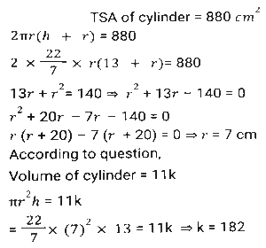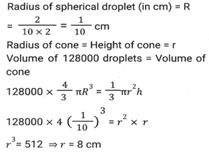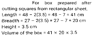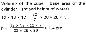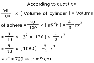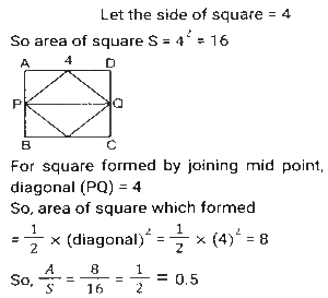 Mensuration (Part-14)Total Questions: 5011. The area of a square is S and that of the square formed by joining the mid points of the given square is A. Then the value of A/S is equal to: [SSC MTS 05/10/2021 (Morning)](a) 0.25(b) 0.5(c) 0.125(d) 1.25Correct Answer: (b) 0.5Solution:12. A container in the shape of a right circular cone, whose radius and depth are equal, gets completely filled by 128000 spherical droplets, each of diameter 2mm. What is the radius (in cm) of the container? [SSC MTS 05/10/2021 (Morning)](a) 6(b) 4(c) 8(d) 2Correct Answer: (c) 8Solution:13. The total surface area of a solid right circular cylinder of height 13 cm, is 880 cm². Its volume (in cm³) is 11k. The value of k is: [SSC MTS 05/10/2021 (Morning)](a) 208(b) 182(c) 104(d) 91Correct Answer: (b) 182Solution:14. The area of a parallelogram ABCD is 300 cm². The distance between AB and CD is 20cm and the distance between BC and AD is 30cm. What is the perimeter (in cm) of the parallelogram? [SSC MTS 05/10/2021 (Evening)](a) 60(b) 50(c) 40(d) 100Correct Answer: (b) 50Solution:15. The radii of the circular ends of a frustum of a cone are 20 cm and 13 cm and its height is 12 cm. What is the capacity (in litres) of the frustum(correct to one decimal place)? (Use π = 22/7) [SSC MTS 06/10/2021 (Morning)](a) 10.4(b) 11.2(c) 10.8(d) 11.4Correct Answer: (a) 10.4Solution:16. If the width of the path around a square field is 4.5 m and the area of the path is 252 m², then the length of the side of the field is: [SSC MTS 06/10/2021 (Morning)](a) 9.5 m(b) 9m(c) 8m(d) 8.5 mCorrect Answer: (a) 9.5 mSolution:17. A solid metal cube of edge 12 cm is immersed completely in water in a cylindrical vessel whose radius is 20 cm and height is 32 cm, and the water in the vessel is up to a height of 15 cm. The height(in cm) by which the water will rise in the vessel is (correct to one decimal place): [SSC MTS 06/10/2021 (Evening)](a) 0.9(b) 1.4(c) 1.2(d) 1.1Correct Answer: (b) 1.4Solution:18. From each of the four corners of a rectangular sheet of dimensions 48 cm x 27 cm, a square of side 3.5 cm is cut off and a box is made. The volume of the box is: [SSC MTS 07/10/2021 (Morning)](a) 2880(b) 2780(c) 2870(d) 2860Correct Answer: (c) 2870Solution:19. The internal dimensions of a rectangular closed wooden box are 30 cm, 18cm and 23cm,. What space (in cm³) will it occupy, if the wood used is 1cm thick? [SSC MTS 08/10/2021 (Morning)](a) 12420(b) 16000(c) 14136(d) 9408Correct Answer: (b) 16000Solution:20. A solid metallic cylinder with a base radius of 3 cm and a height of 120 cm is melted and recast into a sphere of radius r cm. What is the value of r if there is a 10% metal loss in the conversion? [SSC MTS 08/10/2021 (Afternoon)](a) 9(b) 8(c) 13.5(d) 12Correct Answer: (a) 9Solution:Submit Quiz« Previous12345Next »