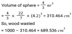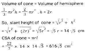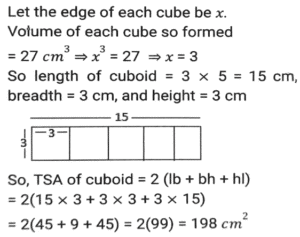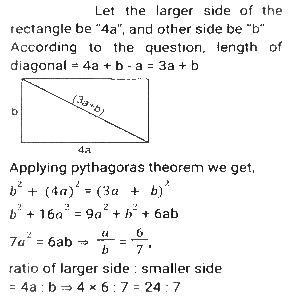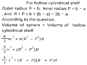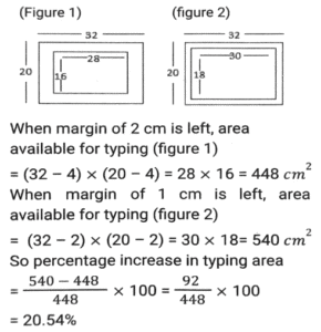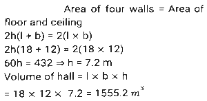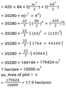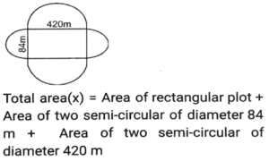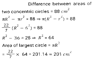 Mensuration (Part-14)Total Questions: 5021. The difference between the areas of two concentric circles is 88 cm². If the radius of the inner circle is 6 cm then the area (in cm²) of the larger circle is closest to: (Use π = 22/7) [SSC MTS 08/10/2021 (Afternoon)](a) 196(b) 201(c) 197(d) 198Correct Answer: (b) 201Solution:22. A rectangular plot is 420 m long and 84 m wide. It is surrounded by semi-circular flower beds along all its sides. The area of the entire plot (in hectares) is x. The value of x (correct to one decimal place) is: (Use π = 22/7) [SSC MTS 08/10/2021 (Evening)](a) 19.1(b) 18.7(c) 17.9(d) 19.4Correct Answer: (c) 17.9Solution:23. From a wooden cubical block of side 10 cm, a sphere of radius 4.2 cm is carved out. How much wood is wasted in 22 the process (Use π = 22/7) [SSC MTS 11/10/2021 (Morning)](a) 476.2 cm³(b) 689.536 cm³(c) 310.464 cm³(d) 523.8 cm³Correct Answer: (b) 689.536 cm³Solution:24. A typist uses a paper of size 32 cmx 20 cm. He leaves a margin of 2 cm each on all the sides. If he leaves a margin of 1 cm only on all the sides. then what is the percentage of the increase in the area available for typing (correct to 2 decimal places)? [SSC MTS 11/10/2021 (Morning)](a) 20.54%(b) 82.69%(c) 17.04%(d) 79.46%Correct Answer: (a) 20.54%Solution:25. A rectangular water reservoir contains 126 kilolitres of water. The depth of the reservoir is 3.5 m and its length measures 8m. What is the width of the reservoir? [SSC MTS 11/10/2021 (Afternoon)](a) 4.5 m(b) 4.2 m(c) 4 m(d) 5 mCorrect Answer: (a) 4.5 mSolution:26. A hall is 18 m long and 12 m broad. If the sum of the areas of the floor and the ceiling is equal to the sum of the 3 areas of the four walls, the volume (in m³ ) of the hall is: [SSC MTS 12/10/2021 (Morning)](a) 1175.5(b) 1876.2(c) 1555.2(d) 1376.4Correct Answer: (c) 1555.2Solution:27. A wooden piece in the shape of a cuboid is divided into five equal parts by cutting it with four cuts perpendicular to its length, and it turns out that each piece is a cube of volume 27 cm³. What is the total surface area (in cm²) of the cuboid? [SSC MTS 12/10/2021 (Afternoon)](a) 150(b) 174(c) 216(d) 198Correct Answer: (d) 198Solution:28. The material of a sphere of radius r is melted and recast into a hollow cylindrical shell of thickness a and outer radius b. What is its length assuming that no material is lost in recasting? [SSC MTS 12/10/2021 (Afternoon)](a)(b)(c)(d)Correct Answer: (d)Solution:29. The radius of the base of a cone and also that of a hemisphere each is 14 cm. Also, the volumes of these two solids are equal. The curved surface area of the cone is: (Take π = 22/7) [SSC MTS 12/10/2021 (Evening)](a) 614√5(b) 626√5(c) 616√5(d) 516√5Correct Answer: (c) 616√5Solution:30. A boy walked along two adjacent sides of a rectangular field. If he had walked along the diagonal, then he would have saved a distance equal to one-fourth of the larger side. The ratio of the larger to the smaller side is: [SSC MTS 13/10/2021 (Morning)](a) 7 : 24(b) 11 : 18(c) 24 : 7(d) 18 : 11Correct Answer: (c) 24 : 7Solution:Submit Quiz« Previous12345Next »