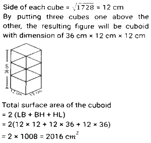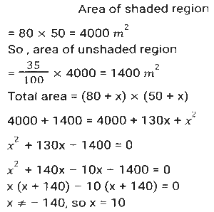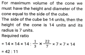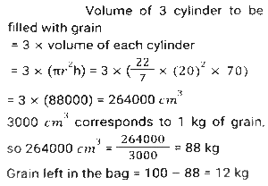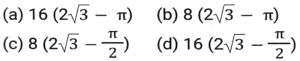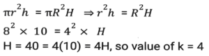 Mensuration (Part-14)Total Questions: 5031. The length of a rectangle is three-fifth of the radius of a circle. The radius of the circle is equal to the side of a square whose area is 6400 m². Find the area (in m²) of the rectangle, if the breadth is 20 m is: [SSC MTS 13/10/2021 (Morning)](a) 1200(b) 480(c) 960(d) 1000Correct Answer: (c) 960Solution:32. Kamala has three cylindrical containers, each with radius 20 cm that she wants to fill with grain. If her bag of grain contains 100 kg of grain, and she fills all three containers to a height of 70 cm, how much grain will be left in the bag. If 1 kg grain occupies 3000 cm³ space? (Use π = 22/7) [SSC MTS 13/10/2021 (Afternoon)](a) 88 kg(b) 50 kg(c) 58 kg(d) 12 kgCorrect Answer: (d) 12 kgSolution:33. The radius of a spherical balloon increases from 6 cm to 10 cm when more air is pumped into it. The ratio of the surface area of the original balloon and the inflated balloon is: [SSC MTS 13/10/2021 (Afternoon)](a) 4:5(b) 27:125(c) 3:5(d) 9:25Correct Answer: (d) 9:25Solution:34. The radius of a cylinder is reduced to 50% of its actual radius. If its volume remains the same as before, then its height becomes k times the original height. The value of k is: [SSC MTS 14/10/2021 (Evening)](a) 2(b) 16(c) 8(d) 4Correct Answer: (d) 4Solution:35. The length and breadth of a rectangle are 35 cm and 12 cm, respectively. What will be the circumference of the circle that inscribes this rectangle ? (π= 22/7) [SSC MTS 14/10/2021 (Evening)](a)(b)(c)(d)Correct Answer: (d)Solution:36. Four solid cubes, each of volume 1728 cm³ are kept in two rows having two cubes in each row. They form a rectangular solid with a square base. The total surface area (in cm²) of the resulting solid is: [SSC MTS 18/10/2021 (Afternoon)](a) 1440(b) 2304(c) 576(d) 1152Correct Answer: (b) 2304Solution:37. A right circular cone is inscribed in a cube of side 14 cm occupying the maximum space possible. What is the ratio of the volume of the cube to the volume of the cone ? (π [SSC MTS 18/10/2021 (Afternoon)](a) 81 : 22(b) 11 : 42(c) 42 : 11(d) 22 : 81Correct Answer: (c) 42 : 11Solution:38. Three circles, each having radius equal to 4 cm, are drawn with the vertices of an equilateral triangle as the centres. If the length of each side of the triangle is equal to 8 cm, then what is the area (in cm²) of the portion of the triangle that is NOT covered by the sectors of the circles ? [SSC MTS 18/10/2021 (Evening)](a)(b)(c)(d)Correct Answer: (b)Solution:39. Three cubes each having volume 1728 cm³ are placed one above the other. What is the total surface area of the resulting solid? [SSC MTS 20/10/2021 (Morning)](a) 2304(b) 2592(c) 2160(d) 2016Correct Answer: (d) 2016Solution:40. In the given figure, the area of the unshaded region is 35% of the area of the shaded region. What is the value of x [SSC MTS 20/10/2021 (Morning)](a) 20(b) 15(c) 10(d) 5Correct Answer: (c) 10Solution:Submit Quiz« Previous12345Next »