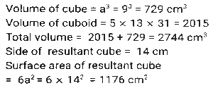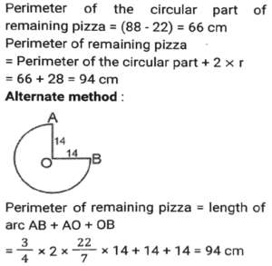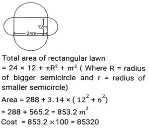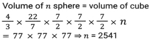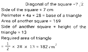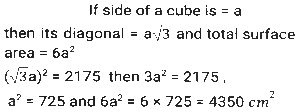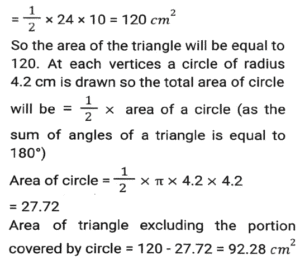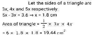 Mensuration (Part-15)Total Questions: 2411. The lengths of three sides of a triangle are in the ratio 3:4:5. Among three sides, the difference between the largest side and the smallest side of this triangle is 3.6 cm. The area of this triangle is: [SSC CHSL 16/04/2021 (Evening)](a) 19.44(b) 32.4(c) 21.75(d) 15.64Correct Answer: (a) 19.44Solution:12. One quarter of a circular pizza of diameter 28 cm was removed from the whole pizza. What is the perimeter (in cm) of the remaining pizza? (π = 22/7) [SSC CHSL 04/08/2021 (Morning)](a) 88(b) 94(c) 80(d) 66Correct Answer: (b) 94Solution:13. From a rectangle sheet of dimensions 32cm x 18 cm, a square of side 3 cm is cut from the four corners of the sheet and a box is made. The volume of the box is: [SSC CHSL 05/08/2021 (Afternoon)](a) 946(b) 936(c) 1305(d) 1300Correct Answer: (b) 936Solution:14. How many spherical bullets, each bullet being 7 cm in diameter, can be made out of a cube of lead whose edge 22 measures 77 cm? (π = 22/7) [SSC CHSL 05/08/2021 (Evening)](a) 1452(b) 4521(c) 2451(d) 2541Correct Answer: (d) 2541Solution:15. The base of a triangle is equal to the perimeter of a square whose diagonal is 7√2cm and its height is equal to the side of a square whose area is 169 cm². The area (in cm²) of the triangle is: [SSC CHSL 06/08/2021 (Afternoon)](a) 182(b) 175(c) 156(d) 130Correct Answer: (a) 182Solution:16. The perimeter of a rectangle is 86 cm. The measures of its area and breadth are in the ratio of 9:1, respectively. The breadth of the rectangle is: [SSC CHSL 11/08/2021 (Evening)](a) 32 cm(b) 34 cm(c) 36 cm(d) 30 cmCorrect Answer: (b) 34 cmSolution:17. The square of the diagonal of a cube is 2175 cm². What is the total surface area (in cm²) of the cube? [SSC CHSL 12/08/2021 (Afternoon)](a) 4305(b) 4272(c) 4530(d) 4350Correct Answer: (d) 4350Solution:18. The sides of a triangle are 24cm, 26cm and 10cm. At each of its vertices, circles of radius 4.2 cm are drawn. What is the area (in cm²) of the triangle, excluding the portion covered by the sectors of the circle ? [SSC CPO 23/11/2020 (Morning)](a) 27.72(b) 120(c) 105.86(d) 92.28Correct Answer: (d) 92.28Solution:19. A 9 cm solid metallic cube and a solid metallic cuboid having dimensions 5 cm, 13cm, 31cm are melted and recast into a single cube. What is the total surface area(in cm²) of the new cube? [SSC CPO 23/11/2020 (Evening)](a) 2744(b) 1362(c) 865(d) 1176Correct Answer: (d) 1176Solution:20. A rectangular lawn whose length is twice of its breadth is extended by having four semi-circular portions on its sides. What is the total cost (in Rs.) of levelling the entire lawn at the rate of Rs.100 per square metre if the smaller side of the rectangular lawn is 12 m: [SSC CPO 23/11/2020 (Evening)](a) 85,320(b) 86,540(c) 78,650(d) 97,625Correct Answer: (a) 85,320Solution:Submit Quiz« Previous123Next »