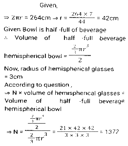 9. A hemispherical bowl is 264 cm round at the brim. Suppose that the bowl is half-full of beverage. If the beverage is served in hemispherical glasses 6 cm in the diameter at the top, how many people would be served ? [SSC MTS 07/10/2024 (Morning)]