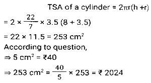 8. A solid cylinder with a height of 8 units and a radius of 3.5 units is to be covered with a paper sheet. If the cost of the paper sheet is ₹40 per 5 square units, the cost (in) of covering the cylinder is _______ (Take π = 22/7) [SSC MTS 01/10/2024 (Afternoon)]