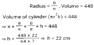 1. A cylinder has a radius 8/π cm and its volume is 448cm³. What is the height of the cylinder (taken π = 22/7)? [SSC CHSL Tier II (18/11/2024)]