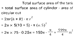 7. A cylindrical tank of height 10 m and radius 5 m has a small circular cut of 0.5 m radius on its top surface. What would be the total surface area of the tank ? [SSC MTS 01/10/2024 (Morning)]