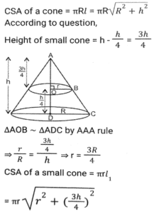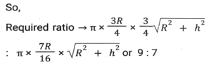 5. A right circular cone of height h and radius R is cut by a plane parallel to the base at a distance h/4 from the base. The ratio of the curved surface areas of the resulting cone to the frustum is: [SSC MTS 30/09/2024 (Afternoon)]