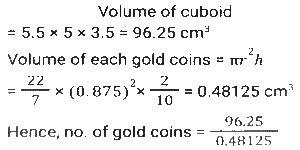 6. What is the number of gold coins, each having a radius of 0.875 cm and a thickness of 2 mm, that need to be melted to create a cuboid with dimensions 5.5cm × 5cm × 3.5cm ? (Use π = 22/7) [SSC MTS 30/09/2024 (Evening)]