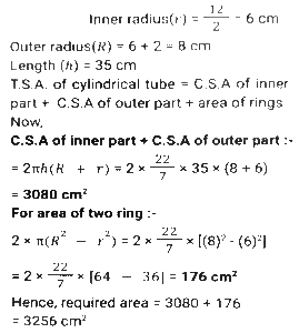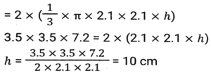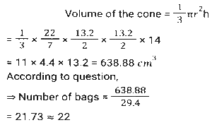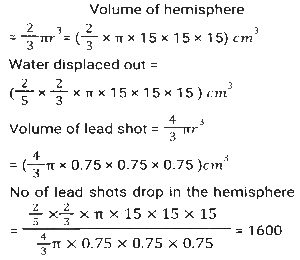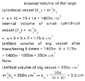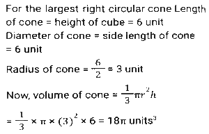 Mensuration (Part-3)Total Questions: 5031. Find the volume of the largest right circular cone which is inscribed in a hollow cube of length 6 units and is standing on its base. [SSC MTS 21/10/2024 (Afternoon)](a) 18π units³(b) 9π units³(c) 21π units³(d) 10π units³Correct Answer: (a) 18π units³Solution:32. A cylindrical vessel of height 14 cm has outer and inner radii 14 cm and 10 cm, respectively. It is to be filled by transferring water in it by using a small cylinder of height 7 cm and outer and inner radii 7 cm and 5 cm, respectively. What will be the unfilled height of the big vessel after transferring water 6 times by using the smaller cylinder? (Use π = 22/7) [SSC MTS 21/10/2024 (Evening)](a) 2.2 cm(b) 3.5 cm(c) 2.9 cm(d) 3.8 cmCorrect Answer: (b) 3.5 cmSolution:33. A cylindrical tube, which is open at both ends, is crafted from a metal. The internal diameter of the tube is 12 cm, and its length is 35 cm. The metal throughout has a thickness of 2 cm. Determine the total surface area (in cm²) of the metal tube. (Take π = 22/7) [SSC MTS 22/10/2024 (Morning)](a) 3696(b) 3256(c) 3854(d) 3145Correct Answer: (b) 3256Solution:34. The perimeter of a rhombus is 160 cm and one of its diagonals has a length 50 cm. Find the area (in cm²) of the rhombus. [SSC MTS 22/10/2024 (Morning)](a) 280√39(b) 300√39(c) 250√39(d) 175√39Correct Answer: (c) 250√39Solution:35. The diagonals of two squares are in the ratio of 5: 6. What is the ratio of their areas ? [SSC MTS 22/10/2024 (Afternoon)](a) 18:20(b) 25:36(c) 23:18(d) 2:3Correct Answer: (b) 25:36Solution:36. An ice-cream cone with a lid has a total surface area equal to the area of another circle of certain radius. If the radius of the circle is equal to average of the slant height and the radius of the cone, then the ratio of the slant height of the cone to the radius of the circle is: [SSC MTS 23/10/2024 (Morning)](a) 3:1(b) 2:3(c) 3:2(d) 1:3Correct Answer: (c) 3:2Solution:37. The diameter of a hollow hemisphere is 30 cm. Water is filled in it up to its brim. When spherical lead shots each of radius 0.75 cm are dropped into the hemisphere, two-fifth of the water flows out. How many lead shots were dropped into the hemisphere ? [SSC MTS 29/10/2024 (Evening)](a) 1575(b) 2250(c) 1600(d) 1380Correct Answer: (c) 1600Solution:38. In a conical tent of diameter 13.2 m and vertical height 14 m, how many full bags of wheat can be emptied, if the space required for the wheat in each bag 22 is 29.04 m³? [Userπ = 22/7) [SSC MTS 30/10/2024 (Afternoon)](a) 25(b) 28(c) 22(d) 21Correct Answer: (c) 22Solution:39. What is the radius of the largest right circular cone that can be cut out from a cube of edge 8.4 cm? [SSC MTS 12/11/2024 (Morning)](a) 4.1 cm(b) 4.2 cm(c) 2.2 cm(d) 2.1 cmCorrect Answer: (b) 4.2 cmSolution:40. A right circular solid metallic cone is 7.2 cm high and radius of its base 3.5 cm. It is melted and recast into two right circular solid metallic cones equal in all respects, each with base radius 2.1 cm and height 'h'. What is the value of 'h' (in cm)? [SSC MTS 13/11/2024 (Morning)](a) 14(b) 10(c) 21(d) 12Correct Answer: (b) 10Solution:Submit Quiz« Previous12345Next »