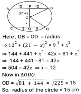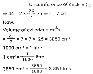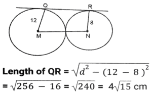 Mensuration (Part-4)Total Questions: 5021. The circumference of the base of a cylindrical vessel is 44 cm and its height is 25 cm. How many liters of water can it hold? (Take π = 22/7) [SSC CGL 17/09/2024 (1st Shift)](a) 38.5(b) 3.58(c) 3.85(d) 83.5Correct Answer: (c) 3.85Solution:22. M and N are, respectively, the centres of two circles of radii 12 cm and 8 cm. QR is the common tangent to the circles. If MN = 16 cm, then what will be the length of QR ? [SSC CGL 17/09/2024 (2nd Shift)](a) 5√17 cm(b) 4√15 cm(c) 3√19 cm(d) 6√8 cmCorrect Answer: (b) 4√15 cmSolution:23. AB and CD are two parallel chords drawn in a circle with centre O. The distance between the two chords is 21 cm. If the lengths of AB and CD are 24 cm and 18 cm, respectively, then the radius of the circle is equal to: [SSC CGL 17/09/2024 (2nd Shift)](a) 15 cm(b) 20 cm(c) 18 cm(d) 24 cmCorrect Answer: (a) 15 cmSolution:24. Find the length of the longest stick that can be fitted in a cubical vessel of edge 70 cm. [SSC CGL 17/09/2024 (2nd Shift)](a) 35√3 cm(b) 70√3cm(c) 10√3 cm(d) 70√2 cmCorrect Answer: (b) 70√3cmSolution:25. In a rhombus PQRS, O is any interior point such that OP = OR. What is the degree measure of ∠SOQ? [SSC CGL 17/09/2024 (2nd Shift)](a) 120°(b) 180°(c) 240°(d) 200°Correct Answer: (b) 180°Solution:26. If the height and diameter of a cm 12 and 28 cm, respectively, then find the ratio of the cylinder are total surface area to the curved surface area. [SSC CGL 17/09/2024 (2nd Shift)](a) 13 : 5(b) 10 : 3(c) 13 : 6(d) 11 : 6Correct Answer: (c) 13 : 6Solution:27. A circular arc makes an angle of 15° at the centre. If the radius of the circular arc is 14 cm, what is the perimeter (correct up to two decimal places) of the sector so formed? (π = 3.14)? [SSC CGL 17/09/2024 (3rd Shift)](a) 17.66 cm(b) 21.32 cm(c) 35.32 cm(d) 31.66 cmCorrect Answer: (d) 31.66 cmSolution:28. The perimeter of a rectangular garden is 48 m. If the length is 6 m more than the breadth, the area (in m²) of the garden is: [SSC CGL 18/09/2024 (1st Shift)](a) 135(b) 96(c) 84(d) 112Correct Answer: (a) 135Solution:29. If three cubes of volume 512 cm³ each are joined end to end, find the surface area of the resulting cuboid. [SSC CGL 18/09/2024 (1st Shift)](a) 896 cm²(b) 986 cm²(c) 895 cm²(d) 869 cm²Correct Answer: (a) 896 cm²Solution:30. The radius of the base of a right circular cone is 9 cm and its slant height is 49 cm. Find the curved surface area of the cone. [SSC CGL 18/09/2024 (2nd Shift)](a) 1386 cm²(b) 1265 cm²(c) 1262 cm²(d) 1490 cm²Correct Answer: (a) 1386 cm²Solution:Submit Quiz« Previous12345Next »
