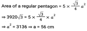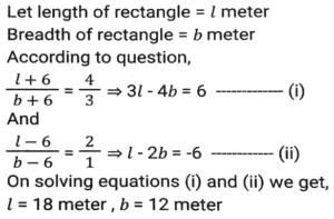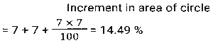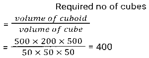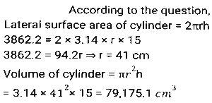 Mensuration (Part-7)Total Questions: 5021. The lateral surface area of a cylinder is 3862.2 cm² and its height is 15 cm. Find its volume (take π = 3.14) correct to one decimal place. [Matriculation Level 24/06/2024 (Shift-1)](a) 79175.1 cm³(b) 88275.2 cm³(c) 78275.2 cm³(d) 89175.1 cm³Correct Answer: (a) 79175.1 cm³Solution:22. The length of cold storage of cuboidal shape is double its breadth and its height is half of its breadth. If its volume is 216 m³, then what are the dimensions of the cold storage? [Matriculation Level 24/06/2024 (Shift-1)](a) 12m x 6m x 3m(b) 12m x 9m x 5m(c) 14m x 7m x 5m(d) 8m x 4m x 2mCorrect Answer: (a) 12m x 6m x 3mSolution:23. The volume of a right circular cylinder of base radius r is obtained by multiplying its curved surface area by : [Matriculation Level 24/06/2024 (Shift-4)](a) 2/r(b) 1/2r(c) 2r(d) r/2Correct Answer: (d) r/2Solution:24. How many cubes of length 50 cm can be accommodated in a container of 5 m in length, 2 m in width and 5 m in height ? [Matriculation Level 25/06/2024 (Shift-1)](a) 400(b) 500(c) 450(d) 250Correct Answer: (a) 400Solution:25. Find the area of a right angle whose base is 15 cm and hypotenuse is 17 cm. [Matriculation Level 26/06/2024 (Shift-1)](a) 40 cm²(b) 55 cm²(c) 60 cm²(d) 75 cm²Correct Answer: (c) 60 cm²Solution:26. The dimensions of a rectangular field when extended by 6 metres are in the ratio of 4 : 3 and when decreased by 6 metres are in the ratio of 2:1. Find the dimensions of the field. [Higher Secondary 20/06/2024 (Shift - 2)](a) 16 metres, 12 metres(b) 10 metres, 6 metres(c) 18 metres, 12 metres(d) 14 metres, 10 metresCorrect Answer: (c) 18 metres, 12 metresSolution:27. The radius of a circle is increased in such a way that its circumference increases by 7%. As a result, the area of the circle also increases by: [Higher Secondary 20/06/2024 (Shift-2)](a) 18.69%(b) 10.28%(c) 14.49%(d) 12.20%Correct Answer: (c) 14.49%Solution:28. The radii of the two concentric circles are 27 cm and 18 cm. The area (in cm²) of the closed figure bounded by the boundaries of the circle is: [Higher Secondary 20/06/2024 (Shift-2)](a) 505π(b) 405π(c) 288π(d) 504πCorrect Answer: (b) 405πSolution:29. A hemispherical bowl has a 21 cm radius. It is to be painted inside as well as outside. The cost of painting it at the rate of ₹0.05 per cm² and assuming that the thickness of the bowl is negligible, is: (Use π = 22/7) [Higher Secondary 24/06/2024 (Shift-2)](a) ₹410.10(b) ₹188.30(c) ₹277.20(d) ₹388.20Correct Answer: (c) ₹277.20Solution:30. If the area of a regular pentagon is 3920√3cm², then how long is its each side? [Higher Secondary 25/06/2024 (Shift-2)](a) 38 cm(b) 56 cm(c) 58 cm(d) 46 cmCorrect Answer: (b) 56 cmSolution:Submit Quiz« Previous12345Next »