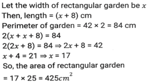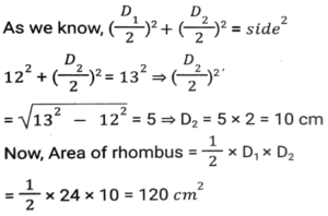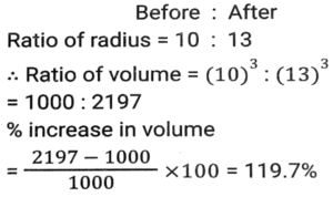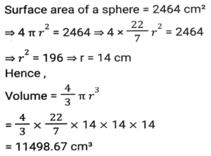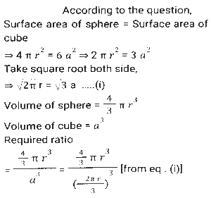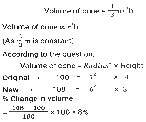 Mensuration (Part-7)Total Questions: 5031. The base of a parallelogram is thrice its height. If the area of the parallelogram is 1020 cm², then what is its height? [Higher Secondary 25/06/2024 (Shift-2)](a) 2√85cm(b) √89cm(c) √82cm(d) 2√84cmCorrect Answer: (a) 2√85cmSolution:32. A sphere and a cube have equal surface areas. The ratio of the volume of the sphere to that of the cube is: [Higher Secondary 25/06/2024 (Shift-4)](a) √6 : π(b) √π : 8(c) √3 : π(d) √2 : πCorrect Answer: (a) √6 : πSolution:33. The surface area of a sphere is 2464 cm². Calculate its volume.(Use π = 22/7 ) [Higher Secondary 26/06/2024 (Shift-2)](a) 11598.67 cm³(b) 11478.67 cm³(c) 11488.67 cm³(d) 11498.67 cm³Correct Answer: (d) 11498.67 cm³Solution:34. The area of the rhombus (in cm²) having each side equal to 13 cm and one of its diagonals equal to 24 cm is: [Graduate Level 20/06/2024 (Shift-3)](a) 110(b) 120(c) 60(d) 130Correct Answer: (b) 120Solution:35. Find the area (in cm²) of a circle with a maximum radius that can be inscribed in a rectangle of length 18 cm and breadth 12 cm. [Graduate Level 20/06/2024 (Shift-3)](a) 72π(b) 28π(c) 136π(d) 36πCorrect Answer: (d) 36πSolution:36. The difference between the total surface area and lateral surface area of a cube, if the side of the cube is 11 cm (in square cm), is______ . [Graduate Level 26/06/2024 (Shift-3)](a) 244(b) 243(c) 242(d) 241Correct Answer: (c) 242Solution:37. If the radius of the right circular cone is increased by 20% and its height is decreased by 25%, then the volume of the right circular cone will be increased by: [Graduate Level 26/06/2024 (Shift-4)](a) 15%(b) 12%(c) 10%(d) 8%Correct Answer: (d) 8%Solution:38. Half the perimeter of rectangular garden, whose length is 8 cm more than its width, is 42 cm. Find the a area of the rectangular garden. [Graduate Level 26/06/2024 (Shift-4)](a) 524 cm²(b) 425 cm²(c) 254 cm²(d) 542 cm²Correct Answer: (b) 425 cm²Solution:39. The volume of a cube is 64 cm³. The total surface area of the cube is: [Graduate Level 26/06/2024 (Shift-4)](a) 16 cm²(b) 64 cm²(c) 96 cm²(d) 128 cm²Correct Answer: (c) 96 cm²Solution:40. The diameter of a sphere is increased by 30%. What is the percentage increase in its volume? [SSC CHSL Tier II (02/11/2023)](a) 69%(b) 119.7%(c) 41.7%(d) 90.5%Correct Answer: (b) 119.7%Solution:Submit Quiz« Previous12345Next »