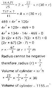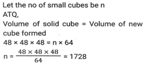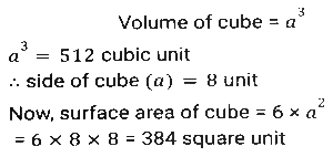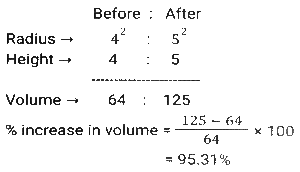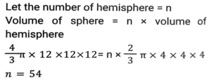 Mensuration (Part-7)Total Questions: 5041. The diameter of a hemispherical bowl is 21 cm. The volume of the bowl is equal to: (Use π = 22/7) [SSC CHSL Tier II (02/11/2023)](a) 2,624.5 cm³(b) 2,425.5 cm³(c) 2,725.5 cm³(d) 2,524.5 cm³Correct Answer: (b) 2,425.5 cm³Solution:42. The radius and height of a right circular cone is increased by 25%. Find the increase in percentage of the volume of the cone (rounded off to 2 decimal places). [SSC CHSL Tier II (02/11/2023)](a) 94.31%(b) 95.31%(c) 94.51%(d) 93.51%Correct Answer: (b) 95.31%Solution:43. A hollow cube is made of paper to have a volume of 512 cubic units. How much paper in square units will be required to make the cube? [SSC CHSL Tier II (10/01/2024)](a) 328(b) 348(c) 288(d) 384Correct Answer: (d) 384Solution:44. A box's right rectangular measurements are 1.6 m long, 90 cm wide, 60 cm in height. Soap cakes of measurement 6 cm x 5 cm x 40 mm are to be packed in the box, so that no space is left. How many cakes can be packed in the box? [SSC CHSL Tier II (10/01/2024)](a) 6000(b) 5600(c) 6500(d) 7200Correct Answer: (d) 7200Solution:45. The ratio of the length, width and height of a closed cuboid is given as 6 : 3 : 2. The total surface area of this cuboid is given as 1800 cm². Find the volume (in cm³) of this cuboid. [SSC CGL Tier II (26/10/2023)](a) 4650(b) 4800(c) 4500(d) 4200Correct Answer: (c) 4500Solution:46. A solid cube, whose each edge is of length 48 cm, is melted. Identical solid cubes, each of volume 64 cm³, are made out of this molten cube, without any wastage. How many such small cubes are obtained ? [SSC CGL Tier II (26/10/2023)](a) 1728(b) 1718(c) 1748(d) 1738Correct Answer: (a) 1728Solution:47. The cost of painting the total surface area of a 30 m high solid right circular cylinder at the rate of ₹25 per m² is 18,425. What is the volume (in m³) of this cylinder [Use π = 22/7] [SSC CPO 03/10/2023 (2nd Shift)](a) 1210(b) 1155(c) 1145(d) 1122Correct Answer: (b) 1155Solution:48. What will be the difference between the total surface area and the curved surface area of a hemisphere having 4 cm diameter ? [SSC CPO 03/10/2023 (2nd Shift)](a) 4.4π cm²(b) 5π cm²(c) 4π cm²(d) 8π cm²Correct Answer: (c) 4π cm²Solution:49. A conical shape vessel has a radius of 21 cm and has a slant height of 25 cm. If the curved part of the vessel is to be painted white, find the cost (in ₹) of painting at the rate of ₹1.5 per cm². [SSC CPO 03/10/2023 (2nd Shift)](a) 2475(b) 825(c) 1650(d) 1250Correct Answer: (a) 2475Solution:50. A solid sphere made of wax of radius 12 cm is melted and cast into solid hemispheres of radius 4 cm each. Find the number of such solid hemispheres. [SSC CPO 03/10/2023 (3rd Shift)](a) 14(b) 54(c) 28(d) 27Correct Answer: (b) 54Solution:Submit Quiz« Previous12345