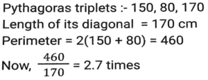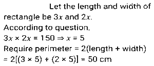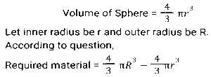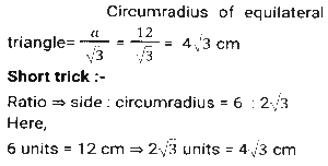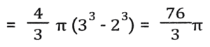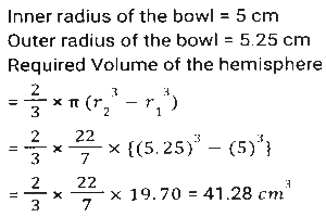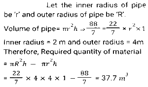 Mensuration (Part-9)Total Questions: 5011. The perimeter of an isosceles triangle is 100 cm. If the base is 36 cm, then find its semi perimeter (in centimetres). [SSC CGL 21/07/2023 (2nd shift)](a) 64(b) 60(c) 45(d) 50Correct Answer: (d) 50Solution:12. The area of the sector of a circle of radius 28 cm is 112 cm². Find the length of the corresponding arc of the sector. [SSC CGL 21/07/2023 (3rd shift)](a) 4 cm(b) 8 cm(c) 6 cm(d) 5 cmCorrect Answer: (b) 8 cmSolution:13. If the volume of one brick is 0.0014 m³, then how many bricks will be required to construct a wall of length 14 m, breadth 0.125 m and height 5 m? [SSC CGL 21/07/2023 (3rd shift)](a) 5250(b) 3250(c) 6250(d) 4250Correct Answer: (c) 6250Solution:14. If the inner radius of a hemispherical bowl is 5 cm and its thickness is 0.25 cm, then find the volume of the material required in making the bowl. (use π = 22/7) (Rounded up to two places of decimals). [SSC CGL 21/07/2023 (4th shift)](a) 34 cm³(b) 44 cm³(c) 45.34 cm³(d) 41.28 cm³Correct Answer: (d) 41.28 cm³Solution:15. A one metre pipe is made with inner diameter equal to outer radius. How much material (in cubic units) is required to make the pipe, if it can hold 88/7 cubic meters water in it ? [SSC CGL 24/07/2023 (1st shift)](a) 37.7(b) 35.5(c) 33.3(d) 36.6Correct Answer: (a) 37.7Solution:16. The ratio of the length to width of a certain rectangle is 3 : 2 and the area is 150 cm². The perimeter of the rectangle (in cm) is: [SSC CGL 24/07/2023 (1st shift)](a) 20(b) 30(c) 50(d) 40Correct Answer: (c) 50Solution:17. The length of each side of a triangle is 12 cm. What is the length of the circumradius of the triangle? [SSC CGL 24/07/2023 (1st shift)](a) 8√3 cm(b) 2√3 cm(c) 6√3 cm(d) 4√3 cmCorrect Answer: (d) 4√3 cmSolution:18. A ball is to be made with inner radius of 2 units and outside radius of 3 units. How much material is required to make the ball?(a)(b)(c)(d)Correct Answer: (c)Solution:19. A metallic cube has each of its side of length 12 cm. It is melted and recast into three small cubes. Out of these cubes, two have their sides as 6 cm and 8 cm, respectively. The length of each side of the third cube is: [SSC CGL 25/07/2023 (1st shift)](a) 7 cm(b) 9 cm(c) 10 cm(d) 5 cmCorrect Answer: (c) 10 cmSolution:20. The field is 150 m long and 80 m wide. How many times (rounded off to 1 decimal place) is its perimeter to the length of its diagonal? [SSC CGL 25/07/2023 (1st shift)](a) 2.3(b) 2.5(c) 2.7(d) 3.1Correct Answer: (c) 2.7Solution:Submit Quiz« Previous12345Next »