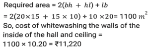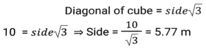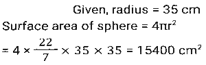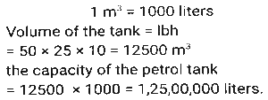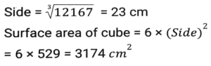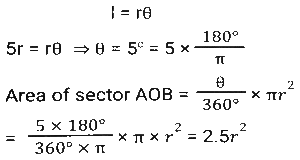 Mensuration (Part-9)Total Questions: 5021. The length, breadth and height of a hall are 10m, 20m and 15m respectively. Find the cost whitewashing the walls of the inside of the hall and ceiling at the rate of ₹10.20/m² [SSC CGL 25/07/2023 (2nd shift)](a) ₹13,394(b) ₹11,220(c) ₹15,320(d) ₹16,542Correct Answer: (b) ₹11,220Solution:22. A cuboid with sides 4, 6 and 8 units is covered with paper. The paper is removed and a square is made from it. What is the side (in units) of the square? [SSC CGL 25/07/2023 (4th shift)](a) 12.24(b) 16.62(c) 14.42(d) 12.62Correct Answer: (c) 14.4223. What is the surface area (in cm²) of a spherical sculpture whose radius is 35 cm? (Take π = 22/7) [SSC CGL 26/07/2023 (2nd shift)](a) 16540(b) 15700(c) 15400(d) 14500Correct Answer: (c) 15400Solution:24. A petrol tank is of length 50 m, breadth 25 m, and depth 10 m. How petrol can be accommodated in the petrol tank when it many litres of is completely filled? [SSC CGL 26/07/2023 (2nd shift)](a) 1,25,00,000(b) 12,50,000(c) 1,25,000(d) 12500Correct Answer: (a) 1,25,00,000Solution:25. In the following figure, the length of arc AB is equal to five times of the radius r of the circle. Find the area of sector AOB ? [SSC CGL 27/07/2023 (1st shift)](a)(b)(c)(d)Correct Answer: (a)Solution:26. A hemispherical bowl has a radius of 7 cm. It is to be painted from inside as well as outside. Find the cost of painting it at the rate of Rs.40 per 20 cm²? (Take the thickness of the bowl as negligible). [SSC CGL 27/07/2023 (1st shift)](a) Rs.1,232(b) Rs.1,125(c) Rs.1,432(d) Rs.1,550Correct Answer: (a) Rs.1,232Solution:27. A circular arc whose radius is 4 cm makes an angle 45° at the centre. Find the perimeter of the sector formed. (Take π = 22/7) [SSC CGL 27/07/2023 (3rd shift)](a)(b)(c)(d)Correct Answer: (a)Solution:28. If the volume of a cube is given as 12167 cm³, then the surface area of the cube will be: [Graduate Level 27/06/2023 (Shift-4)](a) 3475 cm²(b) 4574 cm²(c) 3174 cm²(d) 5413 cm²Correct Answer: (c) 3174 cm²Solution:29. What is the side of a cube (in metres) in which an iron rod of maximum length 10 metres can be put ? [Graduate Level 28/06/2023 (Shift-3)](a) 5.77(b) 7.57(c) 5.57(d) 7.75Correct Answer: (a) 5.77Solution:30. The volume of a cylinder is 1650 m³, whereas the surface area of its base is (78)7/4 m². Find the height of the cylinder. [Graduate Level 30/06/2023 (Shift-1)](a) 7.5 m(b) 14m(c) 21 m(d) 2.1 mCorrect Answer: (c) 21 mSolution:Submit Quiz« Previous12345Next »