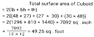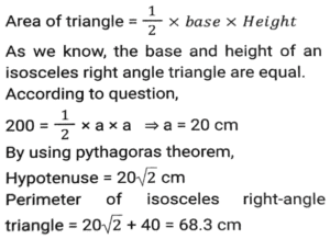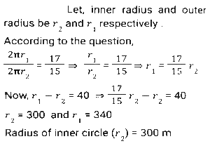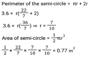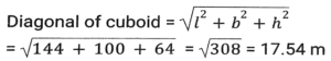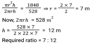 Mensuration (Part-9)Total Questions: 5031. Find the length of a diagonal of a cuboid whose dimensions are 12m, 10m and 8m. (up to one decimal point) [Matriculation Level 27/06/2023 (Shift-1)](a) 18m(b) 16.5m(c) 17m(d) 17.54mCorrect Answer: (d) 17.54mSolution:32. The internal and external diameters of a hollow hemispherical bowl are 6 cm and 10 cm, respectively. If it is melted and recast into a solid cylinder of diameter 14 cm, what is the height of the cylinder in cm? [Matriculation Level 27/06/2023 (Shift-1)](a) 1.1(b) 1.22(c) 1.33(d) 1Correct Answer: (c) 1.33Solution:33. The perimeter of an isosceles right angled triangle having an area of 200 cm² is: [Matriculation Level 28/06/2023 (Shift-1)](a) 68.3 cm(b) 78.2 cm(c) 70.6 cm(d) 58.6 cmCorrect Answer: (a) 68.3 cmSolution:34. A solid sphere has a surface area of 616 cm². This sphere is now cut into two hemispheres. What is the total surface area of one of the hemispheres? [Matriculation Level 28/06/2023 (Shift-1)](a) 440 cm²(b) 462 cm²(c) 452 cm²(d) 390 cm²Correct Answer: (b) 462 cm²Solution:35. The curved surface area of a cylindrical pillar is 528 m² and its volume is 1848 m³. The ratio between its radius and height is ______ . [Matriculation Level 30/06/2023 (Shift-3)](a) 9:10(b) 7:12(c) 7:3(d) 9:5Correct Answer: (b) 7:12Solution:36. To pack a set of books, Surbhi made a carton that was 48 inches long, 27 inches wide and 30 inches tall. What will be the total surface area (in square feet) of this carton, once it is closed from all sides? [Use 1 foot = 12 inches] [Matriculation Level 30/06/2023 (Shift-4)](a) 49.25(b) 48.25(c) 48.75(d) 49.75Correct Answer: (a) 49.25Solution:37. The length of a rectangular plot is thrice its breadth. If the area of the rectangular plot is 2700 m², then what is the breadth of the rectangular plot? [SSC CHSL Tier II (26/06/2023)](a) 20 m(b) 12m(c) 30m(d) 28 mCorrect Answer: (c) 30mSolution:38. When a wire is bent in the form of a square, then the area enclosed by it is 5929 cm². If wire is bent into the form of a circle, then what will be the area enclosed by the wire? [SSC MTS 02/05/2023 (Afternoon)](a) 7546 cm²(b) 8542 cm²(c) 7632 cm²(d) 6954 cm²Correct Answer: (a) 7546 cm²Solution:39. What will be the area of the semi-circle of perimeter 3.6 meters? [SSC MTS 02/05/2023 (Afternoon)](a) 1.54 m²(b) 1.76 m²(c) 1.10 m²(d) 0.77 m²Correct Answer: (d) 0.77 m²Solution:40. The ratio of the outer and the inner circumference of a circular path is 17 : 15. If path is 40 metres wide, then what is the radius of the inner circle? [SSC MTS 02/05/2023 (Evening)](a) 280 metres(b) 340 metres(c) 360 metres(d) 300 metresCorrect Answer: (d) 300 metresSolution:Submit Quiz« Previous12345Next »