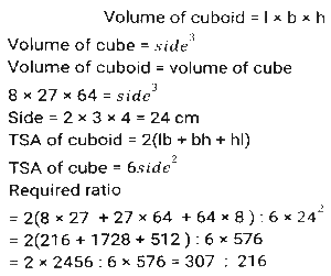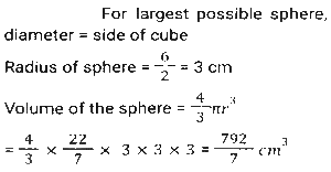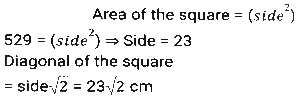Mensuration (Part-9)Total Questions: 5041. If the area of a square is 529cm² then what is the length of its diagonal? [SSC MTS 03/05/2023 (Morning)](a) 23 cm(b) 26√3(c) 23√2(d) 46 cmCorrect Answer: (c) 23√2Solution:42. The length of a cuboid is six times of its breadth and the height of a cuboid is four times of its breadth. If the breadth of the cuboid is 3 cm, then what is the total surface area of the cuboid? [SSC MTS 03/05/2023 (Evening)](a) 484 cm²(b) 612 cm²(c) 576 cm²(d) 676 cm²Correct Answer: (b) 612 cm²Solution:43. The ratio of radii of a cylinder to a cone is 3:1. If their heights are equal, What is the ratio of their volumes? [SSC MTS 03/05/2023 (Evening)](a) 1:3(b) 27:1(c) 9:1(d) 1:9Correct Answer: (b) 27:1Solution:44. The ratio of the sides of a triangle is 11 : 11 : 4. If the area of triangle is 2√117 cm², then what is the length of the equal sides ? [SSC MTS 04/05/2023 (Morning)](a) 3 cm(b) 13 cm(c) 11cm(d) 9 cmCorrect Answer: (c) 11cmSolution:45. The two adjacent sides of a parallelogram are 12 cm and 5 cm respectively. If one of the diagonals is 13 cm long, then what is the area of the parallelogram? [SSC MTS 04/05/2023 (Afternoon)](a) 60 cm²(b) 30 cm²(c) 75 cm²(d) 25 cm²Correct Answer: (a) 60 cm²Solution:46. A cuboid whose sides are 8 cm, 27 cm and 64 cm is melted to form a new cube. What is the respective ratio of the total surface area of the cuboid and cube? [SSC MTS 08/05/2023 (Morning)](a) 307:216(b) 291:203(c) 349:248(d) 329: 237Correct Answer: (a) 307:216Solution:47. Find ¹⁄₂₁ th of the volume of a hemisphere whose radius is 4.2 m [SSC MTS 08/05/2023 (Afternoon)](a) 6.6 m³(b) 7.3 m³(c) 8.2 m³(d) 7.1 m³Correct Answer: (b) 7.3 m³Solution:48. Two cubes each of edge 9 cm are joined to form a single cuboid. What is the total surface area of the cuboid formed? [SSC MTS 08/05/2023 (Afternoon)](a) 775 cm²(b) 810 cm²(c) 990 cm²(d) 1024 cm²Correct Answer: (b) 810 cm²Solution:49. The radius of the base of a conical tent is 8 m and its height is 15 m, what is the cost of the material needed to make it if it costs Rs.54 per π m² ? [SSC MTS 08/05/2023 (Evening)](a) Rs.6454(b) Rs.7344(c) Rs.8678(d) Rs.7454Correct Answer: (b) Rs.7344Solution:50. The largest possible sphere is carved out of a cube of side 6 cm. What is the volume of the sphere? [SSC MTS 09/05/2023 (Morning)](a)(b)(c)(d)Correct Answer: (a)Solution:Submit Quiz« Previous12345