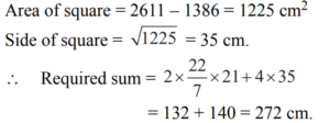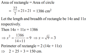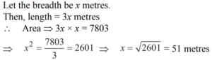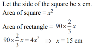 MENSURATION (QUANTITATIVE APTITUDE) EPFO UPSCTotal Questions: 301. The length of a rectangular plot is thrice its breadth. If the area of the rectangular plot is 7803 sq. mts., what is the breadth of the rectangular plot?(a) 51 metre(b) 153 metre(c) 104 metre(d) 88 metreCorrect Answer: (a) 51 metreSolution:2. Area of a rectangle is equal to the area of the circle whose radius is 21 cm. If the length and the breadth of the rectangle are in the ratio of 14 : 11 respectively, what is its perimeter?(a) 142 cm.(b) 140 cm.(c) 132 cm.(d) 150 cm.Correct Answer: (d) 150 cm.Solution:3. The total area of a circle and a square together are equal to 2611 sq. cm. The diameter of the circle is 42 cms. What is the sum of the circumference of the circle and the perimeter of the square ?(a) 272 cms.(b) 380 cms.(c) 280 cms.(d) Cannot be determinedCorrect Answer: (a) 272 cms.Solution:4. The area of a rectangle is 4 times the area of a square. The length of the rectangle is 90 cm and the breadth of the rectangle is 2/3 of the side of the square. What is the side of the square ?(a) 10 cm(b) 20 cm(c) 9 cm(d) None of theseCorrect Answer: (d) None of theseSolution:5. An equilateral triangle of side 6 cm has its corners cut off to form a regular hexagon. Area (in cm²) of this regular hexagon will be(a)(b)(c)(d)Correct Answer: (c)Solution:6. If the circumference of a circle is decreased by 50% then the percentage of decrease in its area is(a) 25(b) 50(c) 60(d) 75Correct Answer: (d) 75Solution:7. A copper wire of length 36 m and diameter 2 mm is melted to form a sphere. The radius of the sphere (in cm) is(a) 2.5(b) 3(c) 3.5(d) 4Correct Answer: (b) 3Solution:8. A copper wire is bent in the shape of a square of area 81 cm². If the same wire is bent form of a semicircle, the radius (in cm) of the semicircle is [(Take π= 22/7) ](a) 16(b) 14(c) 10(d) 7Correct Answer: (d) 7Solution:9. The volume (in m3) of rain water that can be collected from 1.5 hectares of ground in a rainfall of 5 cm is(a) 75(b) 750(c) 7500(d) 75000Correct Answer: (b) 750Solution:10. A river 3 m deep and 40 m wide is flowing at the rate of 2 km per hour. How much water (in litres) will fall into the sea in a minute?(a) 4,00,000(b) 40,00,000(c) 40,000(d) 4,000Correct Answer: (b) 40,00,000Solution:Submit Quiz123Next »