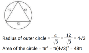2. An equilateral triangle of side 12 cm is inscribed in a circle. What is the area (in cm²) of the circle? [Level 2 (13/06/2022) Shift 2]