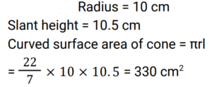 5. The diameter of base of a right circular cone is 20 cm and its slant height is 10.5 cm. What is the curvedsurface area (in cm²) of the right circular cone? (Use Π = 22/7] [Level 2 (13/06/2022) Shift 2 ]