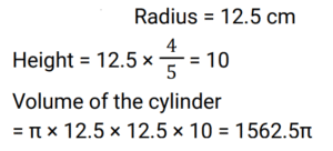 10. Find the volume of a cylinder whose base radius is 12.5 cm and whose height is 4/5 of the base radius. [Level 3 (14/06/2022) Shift 2]